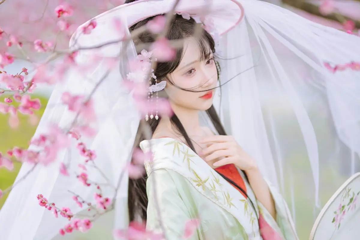 This stunning photograph captures Qi Luo Sheng De Xiao Su Su in an exquisitely crafted traditional Hanfu, radiating ethereal beauty and grace. Amidst a romantic backdrop of blooming cherry blossoms, each pink petal enhances the maiden's gentle and delicate charm. Her elaborate updo, adorned with fresh flowers and classic ornaments, creates a poetic and artistic representation of East Asian aesthetics. She appears like a fairy who has descended to earth, embodying purity and timeless beauty. The image is not just a moment but a narrative of harmony between humanity and nature, beautifully presented through the artistic photography style of YiTuYu Vol.8553. The allure of Qi Luo Sheng De Xiao Su Su, her traditional attire, and the enchanting natural setting are sure to captivate hearts.#Hanfu #QiLuoShengDeXiaoSuSu #CherryBlossom #AsianBeauty #TraditionalChinese