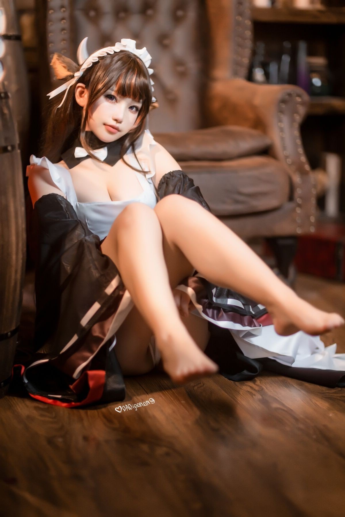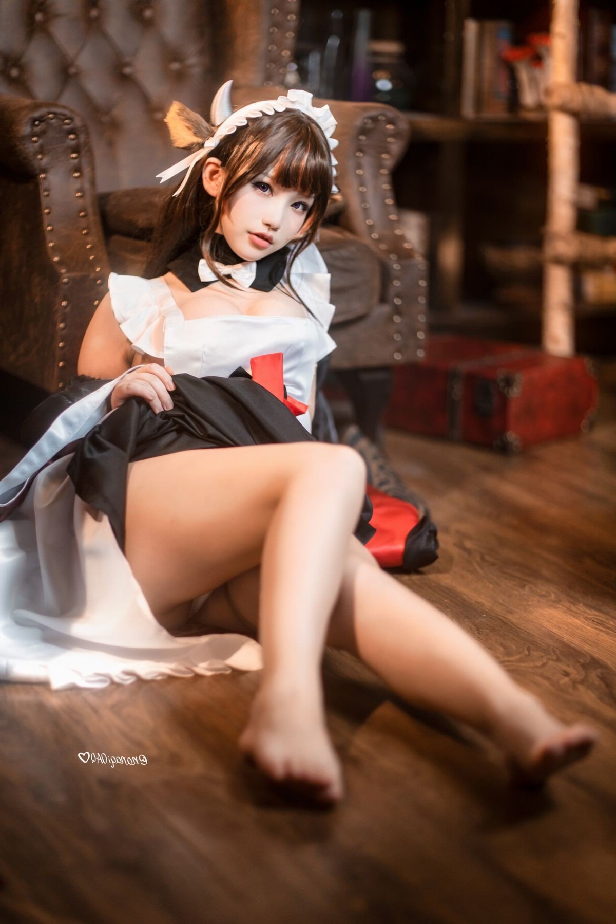 This cosplay collection features Coser Qiqi Nanako in her unique Cow Maid outfit. She makes a strong impression with her sweet and adorable appearance. Her long hair, large round eyes, and playful expression create a captivating Qiqi Nanako. The stylized maid costume, highlighted by charming small cow horns, combined with delicate lace and bow details, subtly enhances her allure. Each photo conveys Qiqi Nanako's confident and professional demeanor, leaving viewers enchanted. This is undoubtedly a superb Cow Maid cosplay transformation, showcasing meticulous effort from the costume to the posing, providing an impressive visual experience for the fan community.