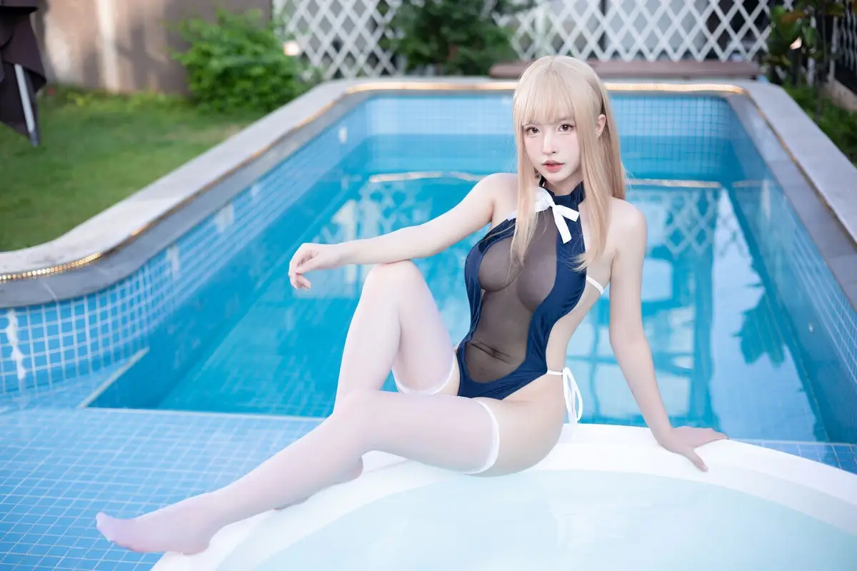 Coser Qing Shui You Nai's 'Blue Summer' Charm: Alluring Beauty by the Pool