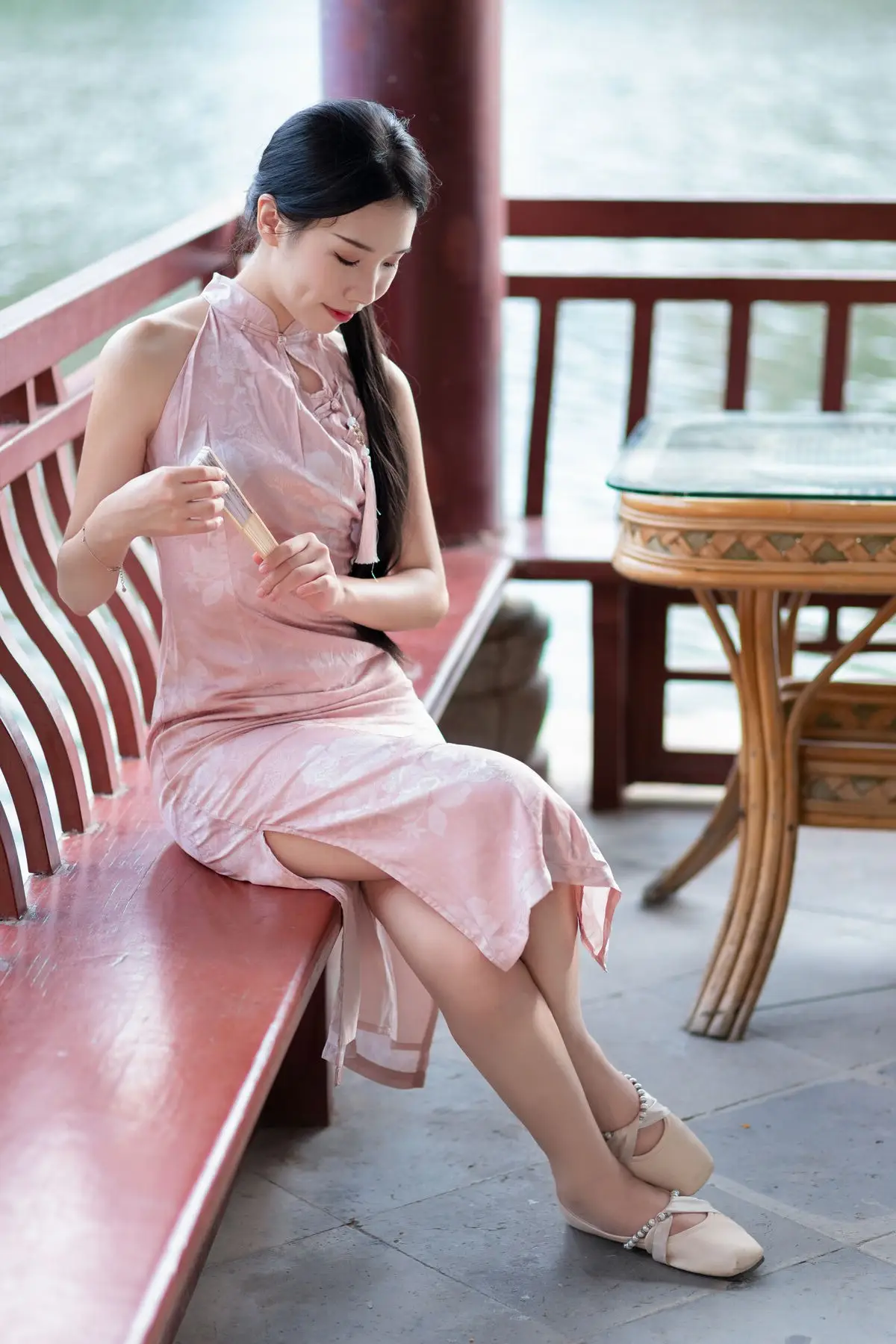 Timeless Elegance: Nan Zhi in Pink Cheongsam - XiuRen No.10671