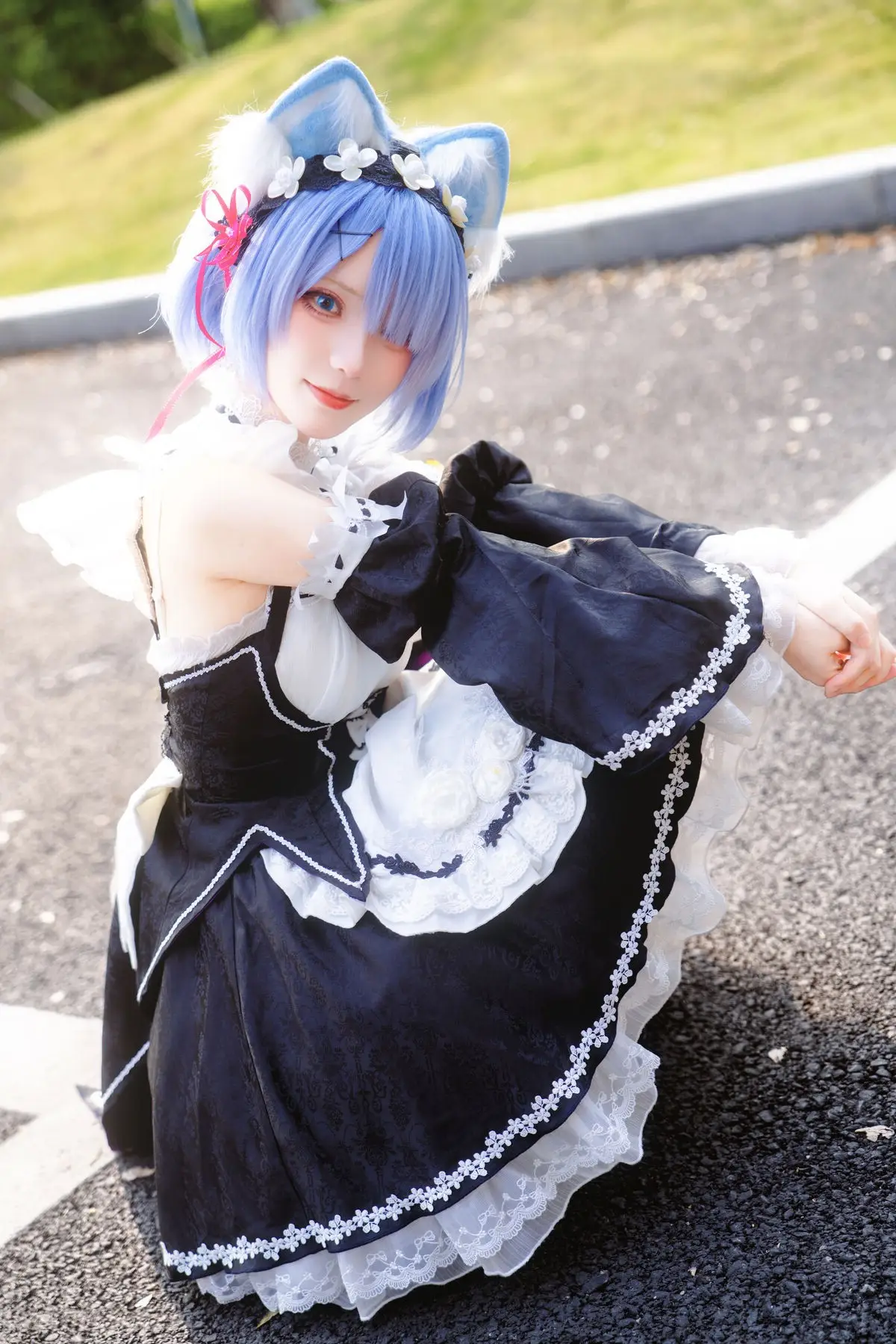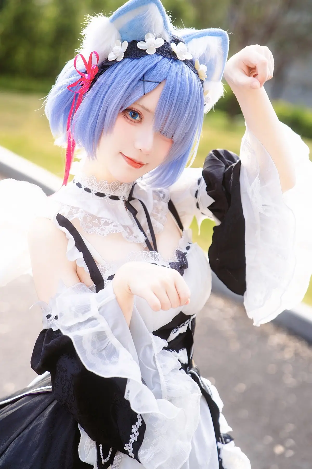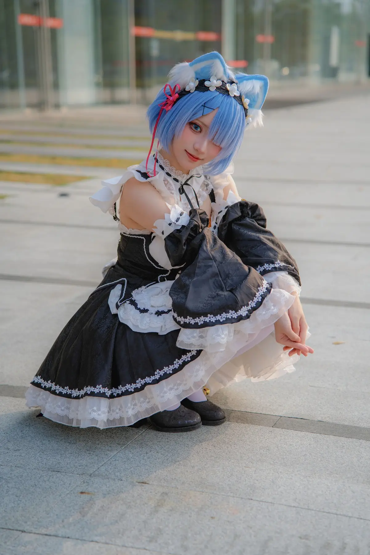 Step into the enchanting world of anime with this breathtaking cosplay of Rem from the beloved series Re:Zero. Captured during the Firefly Animation Carnival, talented cosplayer Hana brings a playful yet elegant twist to the iconic character by blending a classic maid aesthetic with adorable cat features. This 'Cat Rem' (Neko Rem) look is a fan favorite, featuring the signature short blue hair, a detailed black and white maid dress, and delicate feline ears that add a touch of whimsy.Whether you are a die-hard fan of the Re:Zero Starting Life in Another World series or an enthusiast of high-quality anime photography, these images perfectly capture the essence of the 'Onee-san' and 'Maid' tropes that dominate the cosplay scene. The craftsmanship in the costume and the expressive posing highlight Hana's dedication to the craft. This collection, identified under reference d9a54ae0-19aa-45e0-9ff4-c6a04e11d589, is a must-see for anyone looking for inspiration in the world of Japanese pop culture and convention fashion.