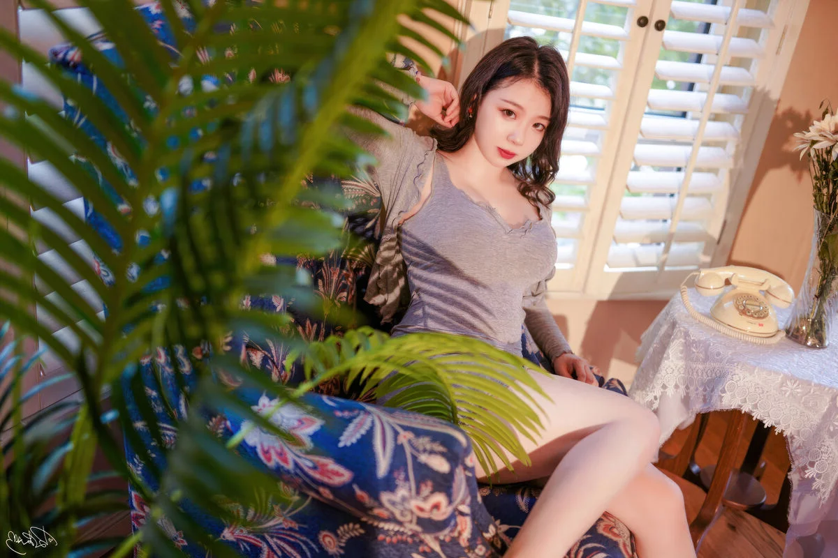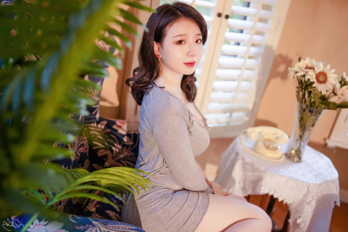 Step into a world of nostalgic beauty where every frame tells a story of quiet elegance and refined grace. In this series, Pi Pi Nai Ke Ke Ai Le La embodies the sophisticated charm of a classic landlady, captured in a moment of soft reflection. The golden afternoon light filters through the wooden shutters, casting a warm glow on her lavender silk dress that drapes beautifully over her silhouette. The choice of fabric and the muted color palette evoke a sense of luxury and timelessness, perfectly complemented by the vintage interior decor. From the antique rotary phone to the floral patterned armchair, every detail is carefully curated to create a cinematic atmosphere filled with emotion and artistic depth. It is a visual journey that celebrates femininity and the art of storytelling through fashion and light, leaving a lasting impression of serenity and poetic longing in a space that feels both intimate and grand.