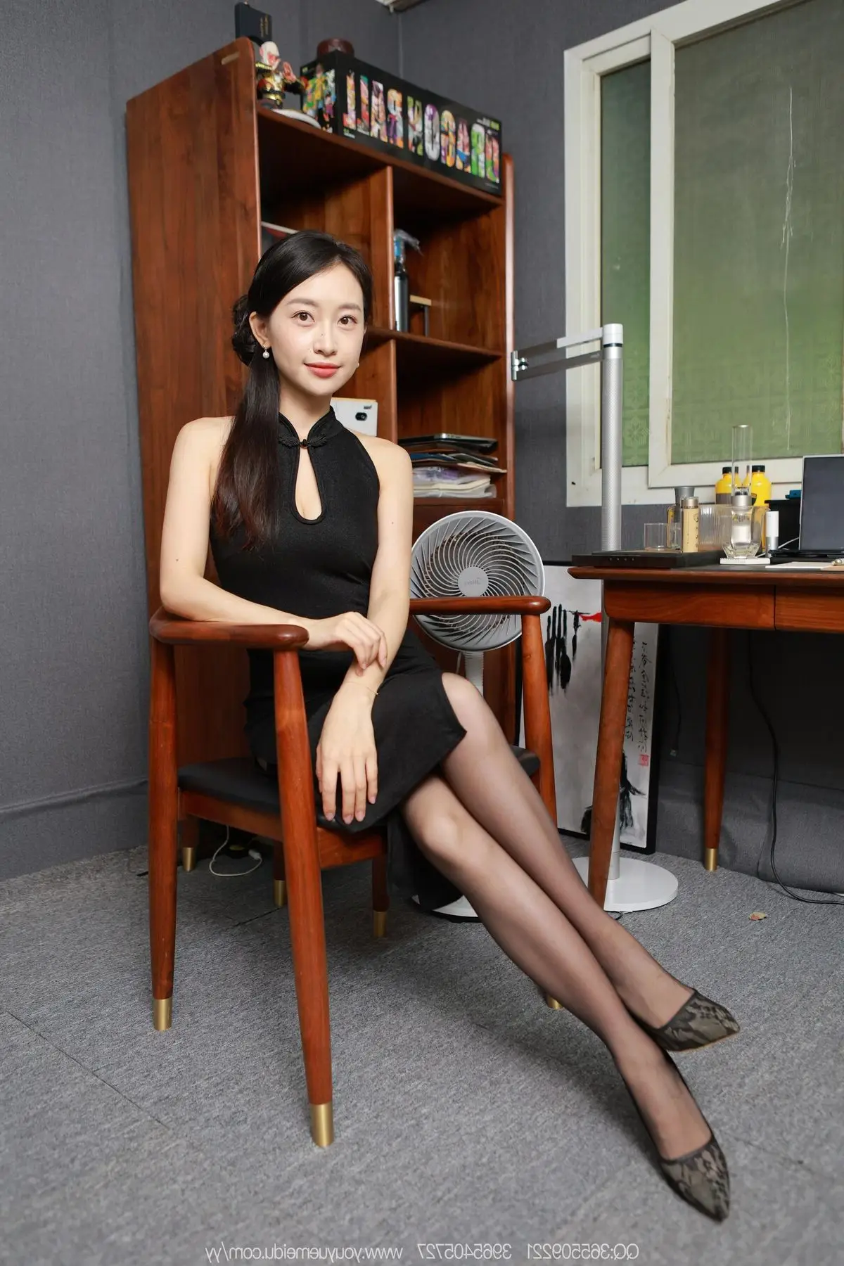 In the IESS SXJ No.2147 collection, model Xiao Jie emanates a captivating and elegant beauty. She gracefully sits on a wooden chair, subtly showcasing her long alluring legs in sheer black stockings and luxurious high heels. Her form-fitting black dress further accentuates her slender and refined physique. With a gentle smile and captivating gaze, Xiao Jie creates an alluring moment reflecting the confidence and professional demeanor of a Chinese model. This photo not only celebrates physical beauty but also portrays sophistication and elegance in every gesture transforming each frame into an emotional work of art. It stands as a testament to the irresistible charm of the IESS style.#IESS #XiaoJie #SXJNo2147 #ChineseModel #ElegantBeauty #OfficeLady #OL #Secretary