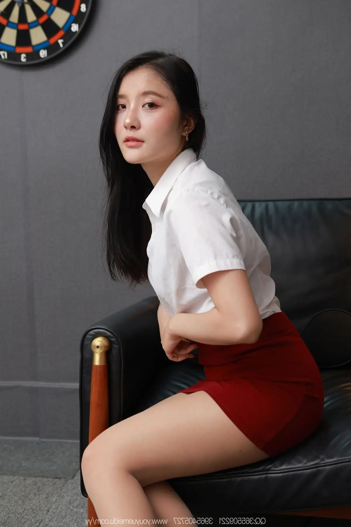 Chinese model Wan Ping, featured in IESS SXJ No.2100 Part 2, exudes an elegant and self-assured beauty. She is gracefully seated on a luxurious leather armchair, dressed in a pristine white shirt paired with a striking red mini skirt, creating a look that is both professional and captivating. Her black high heels accentuate her slender figure, while her mesmerizing gaze conveys professionalism and an undeniable charm. This image beautifully captures not only an impressive fashion moment but also highlights Wan Ping's distinctive charisma, embodying confidence and modern style.#WanPing #IESS #ChineseModel #FashionPortrait #ElegantStyle #OfficeLady #OL #Secretary