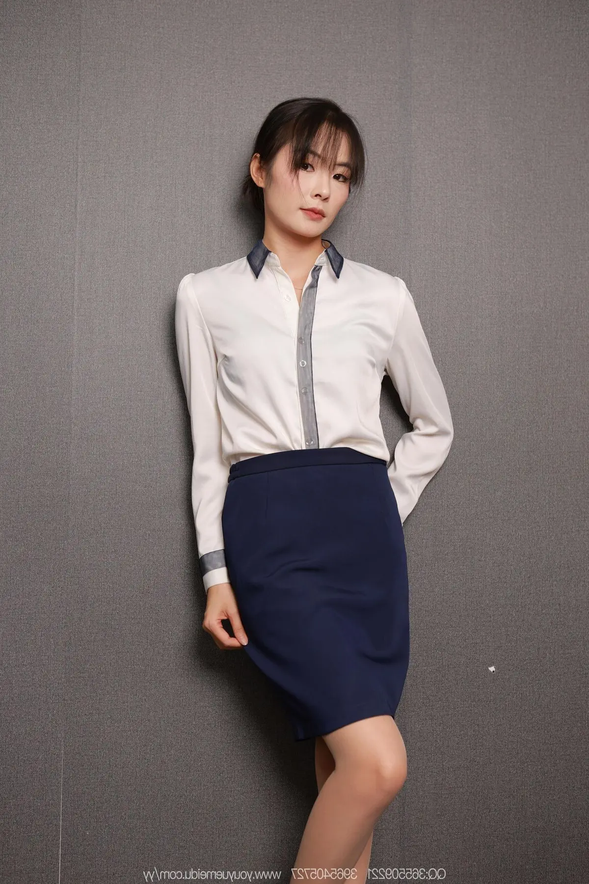 This image beautifully captures the elegant and refined charm of model Xiao Jin from the IESS SXJ No.2139 collection. Dressed in familiar office attire a crisp white shirt and a dark skirt she exudes a professional yet uniquely graceful demeanor. A subtle highlight is her slender legs delicately enhanced by sheer nude stockings adding a touch of softness and gentle allure. Her relaxed posture seated casually on the floor leaning against a simple wall suggests a private moment of respite where natural beauty and understated sensuality are captivatingly revealed. This photograph is a testament to IESSs distinctive style where elegance and femininity are portrayed through every frame sparking curiosity about the entire series.#IESS #XiaoJin #OfficeFashion #Stockings #AsianBeauty #OfficeLady #OL #Secretary