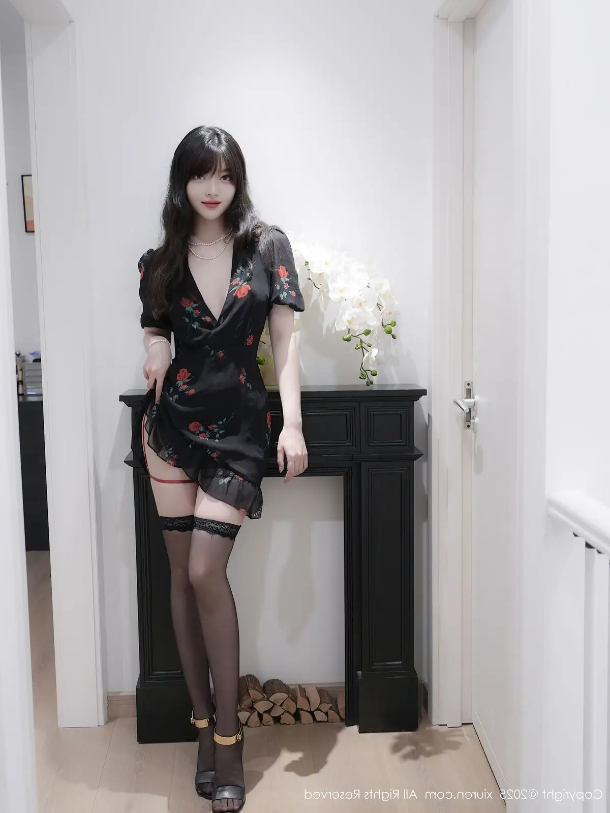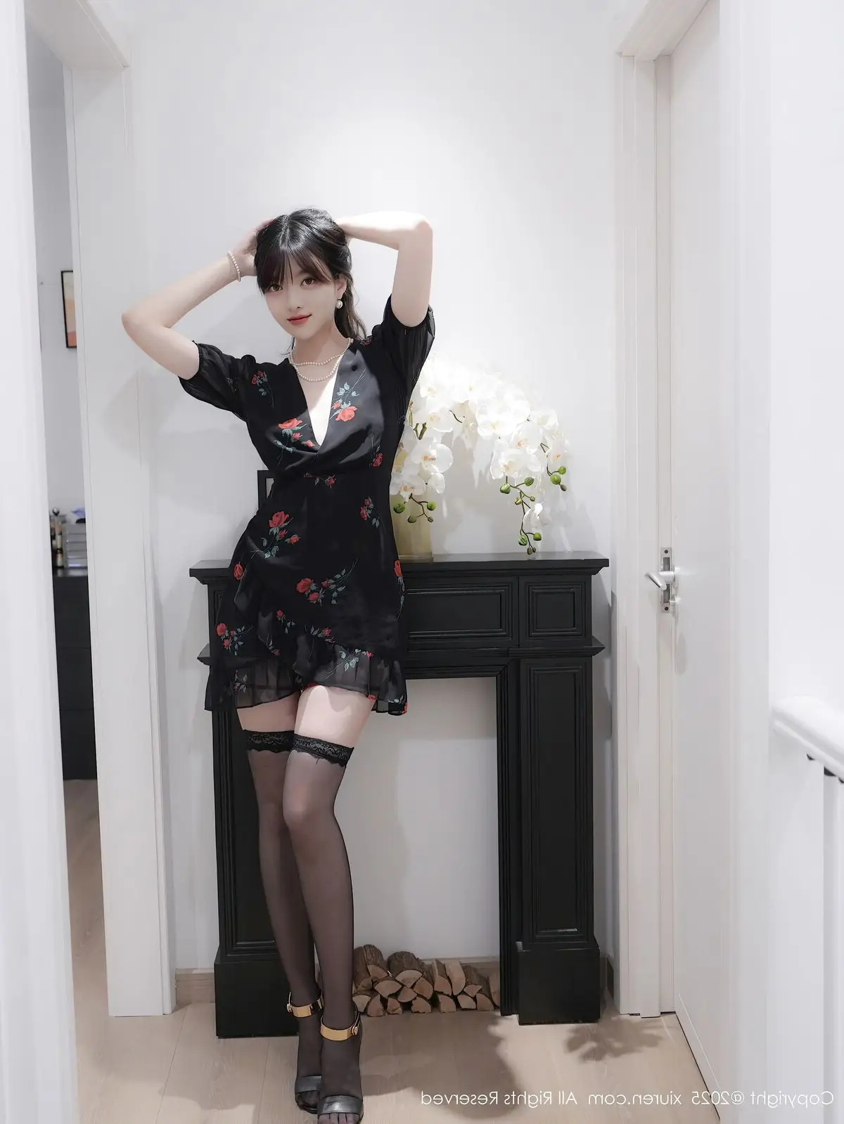 Bai Lu Lulu shines in the XiuRen No.10586 collection exuding captivating beauty and allure. She dons an exquisite rose black dress elegantly accentuating her slender figure and graceful curves. The sheer black stockings subtly enhanced by red garter straps add a bold and intriguing touch sparking curiosity. With a confident demeanor captivating gaze and long elegant legs Bai Lu Lulu embodies a blend of sensuality and sophisticated charm. The intimate setting of a dressing table further highlights her natural beauty and meticulous presentation. Each frame beautifully captures her professionalism and irresistible charisma offering viewers a truly impressive visual experience of a talented model.