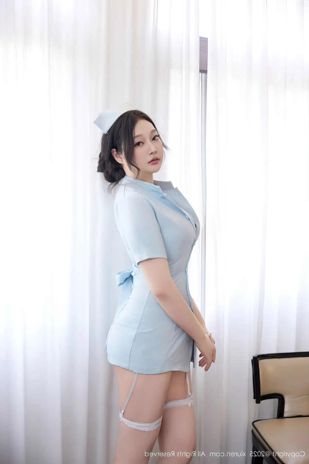 Discover the captivating charm of Ada Yue Yue in the exclusive XiuRen No.10551 collection. This striking image features Ada Yue Yue gracefully adorned in a refined pastel blue nurse uniform, perfectly accentuating her slender figure and elegant curves. The neat little hat and her sleek dark hair enhance her alluring appeal, blending professionalism with a touch of captivating sensuality. Her gaze, directed confidently towards the camera, exudes the self-assurance and charisma characteristic of Ada Yue Yue. The soft white background beautifully highlights the main subject, creating a harmonious and artistic composition that invites viewers to appreciate every exquisite detail of this special photo series.