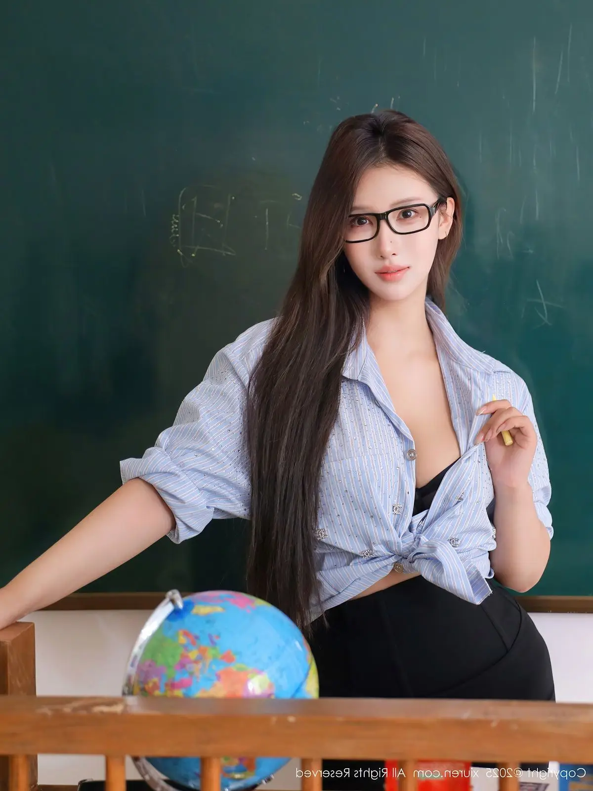 In the exclusive XiuRen No.10585 series, Nan Qiao captivates with her enchanting presence amidst a familiar classroom setting. Teacher Nan Qiao draws every eye with her elegant yet undeniably alluring beauty, exuding from her stylish glasses and deep, thoughtful gaze. Her light blue ruffled top paired with a form-fitting black pencil skirt gracefully highlights her figure, crafting an image of an intellectual and irresistibly charming female instructor. Every gesture, from holding chalk to write on the blackboard to her graceful stance, portrays a confident and mysterious Nan Qiao. This collection not only presents beautiful moments but also sparks curiosity about the story behind Nan Qiao's captivating allure.#NanQiao #XiuRen #SexyTeacher #ClassroomVibes #IntellectualBeauty