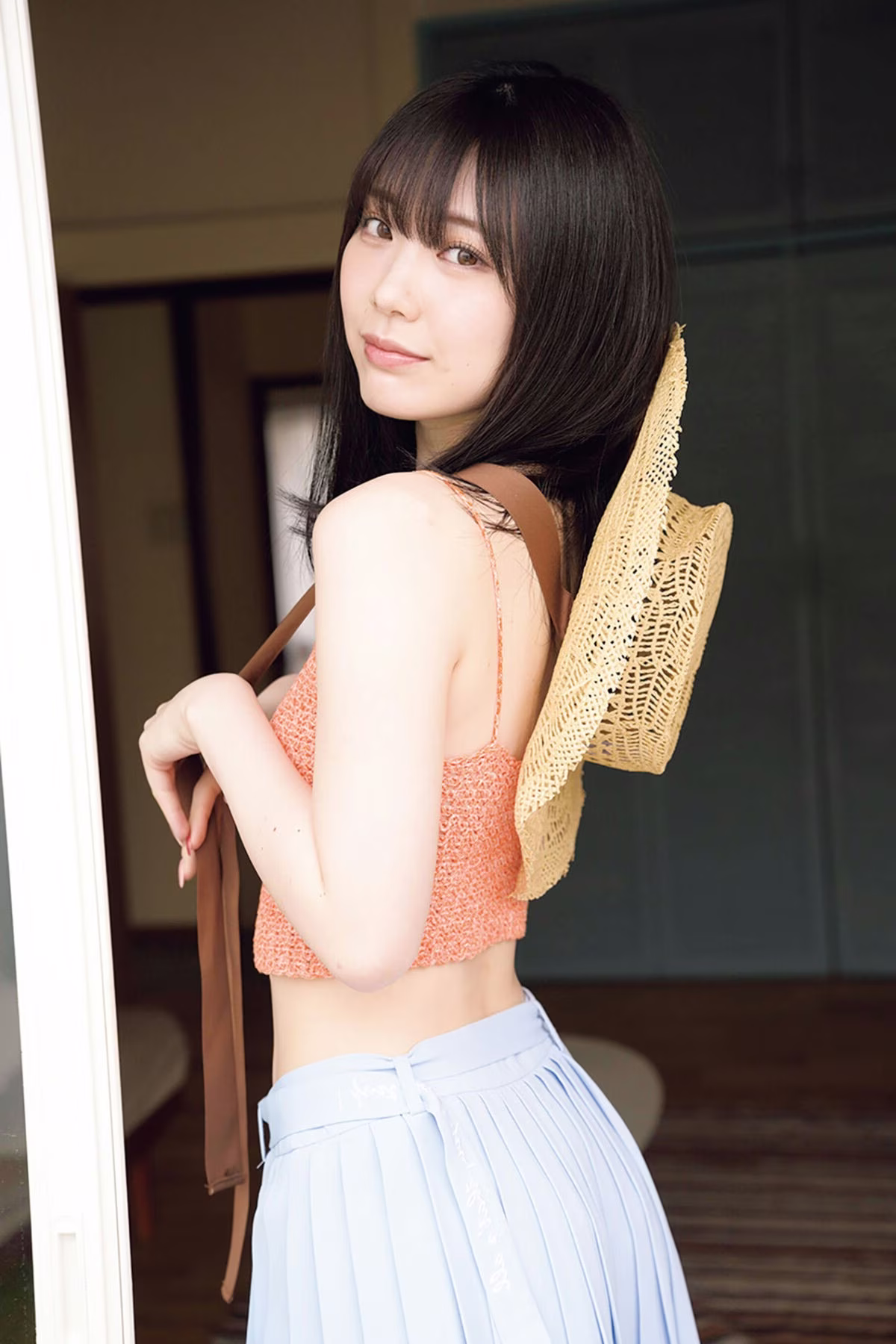 Immerse yourself in the fresh and elegant beauty of Mio Ishikawa (石川澪) from her enchanting Summer 2023 collection. This captivating image perfectly captures her charming smile and warm, inviting gaze, exuding a profound sense of peace and approachability. Dressed in a vibrant orange top that complements her radiant complexion and gently holding a delicate straw hat, Mio Ishikawa effortlessly showcases a natural and stylish summer appeal. She embodies not just a talented Japanese model known for her grace, but also an icon of gentle allure and understated sophistication. Discover more emotionally rich images and explore the unique summer fashion trends brought to life by Mio Ishikawa, a collection guaranteed to captivate every eye with its timeless charm.