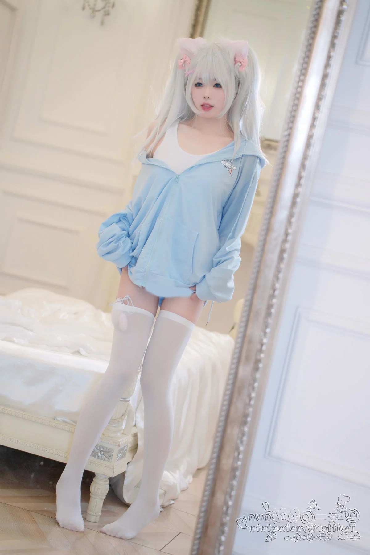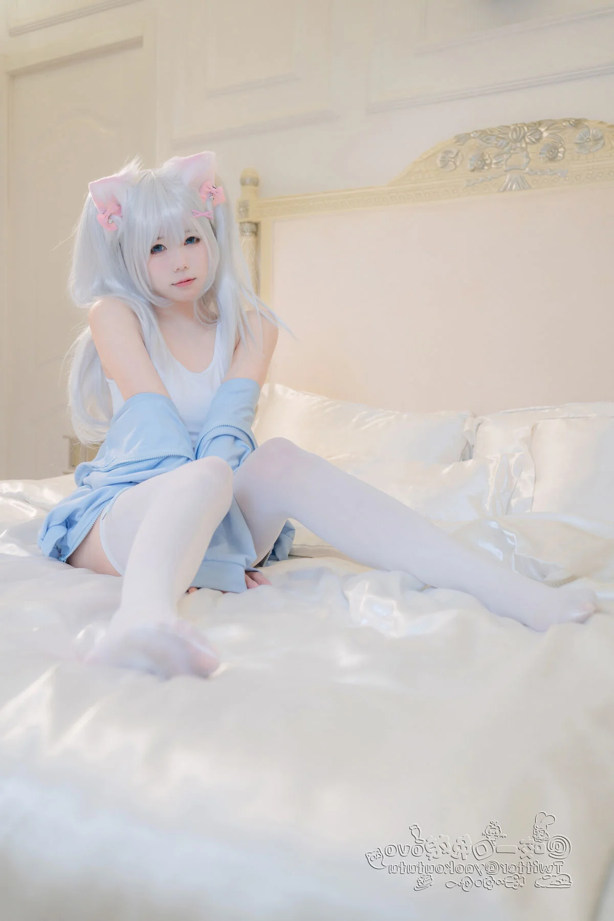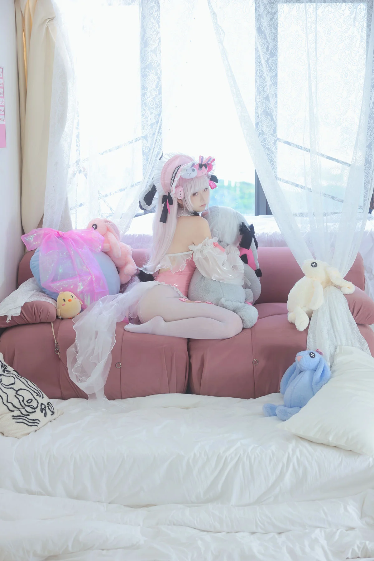 Step into a world where fashion meets fantasy in the most delicate way possible. The latest collection 'Be Your Cat' by the renowned artist Nian Nian Tuan Zi Tu (黏黏团子兔) is more than just a cosplay gallery; it is a masterclass in visual storytelling and aesthetic photography. Capturing the essence of playfulness and domestic elegance, this series has quickly become a focal point for creators looking for high-quality inspiration on platforms like Pinterest and Instagram.Nian Nian Tuan Zi Tu masterfully embodies the 'cat-girl' trope, elevating it with a sophisticated touch that resonates with Western aesthetic trends such as 'Coquette' and 'Soft Girl' vibes. The set features 57 meticulously composed photographs and a captivating video, showcasing a blend of soft textures—think delicate lace, plush velvet ears, and silk ribbons. The color palette is intentionally warm and inviting, utilizing natural indoor lighting to create a sense of intimacy and warmth that feels both cinematic and personal.