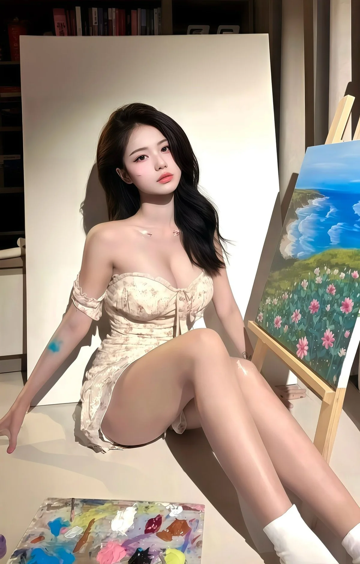 This collection is more than just a photoshoot; it’s a celebration of creativity and feminine charm. Perfect for those who curate aesthetic mood boards on Instagram or seek high-quality lifestyle photography for their blogs. The serene expression and poised stature of the model make this set a standout in the current digital art and fashion scene. Explore the intersection of hobby and lifestyle through the lens of this captivating artist-themed session, showcasing how passion and poise can create a truly viral moment.
