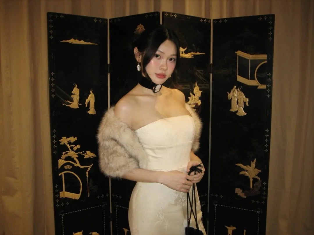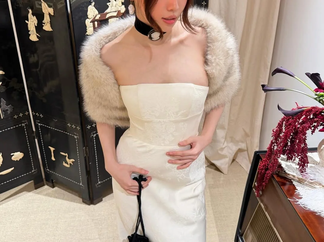 Ly Pham makes a breathtaking return to the fashion scene, proving that motherhood only adds more depth to her undeniable charm. Stepping back into the spotlight, she exudes an aura of timeless elegance against a classic lacquer screen backdrop. Her choice of a cream-colored strapless gown perfectly highlights her graceful silhouette and radiant skin. The ensemble is elevated by a plush fur shrug and a bold black choker, blending modern chic with a touch of vintage glamour. Every detail, from the soft textures of her outfit to her poised expression, tells a story of confidence and refined taste. This visual journey is not just about clothes but an artistic celebration of a woman's transition into a new chapter of life while maintaining her unique aesthetic. The warm lighting and sophisticated interior create a dreamy atmosphere that makes her comeback truly unforgettable for fashion enthusiasts and followers alike.#LyPhamReturn #HotMomStyle #SophisticatedLook #FashionPhotography #ChicElegance