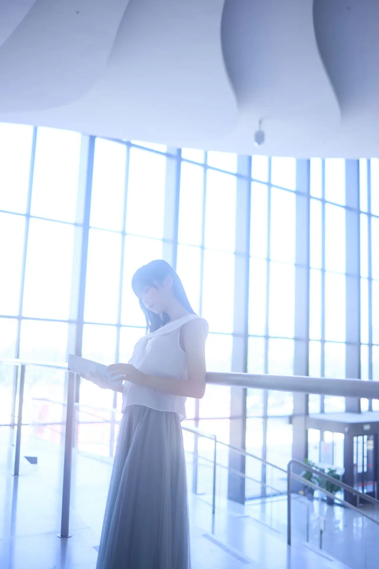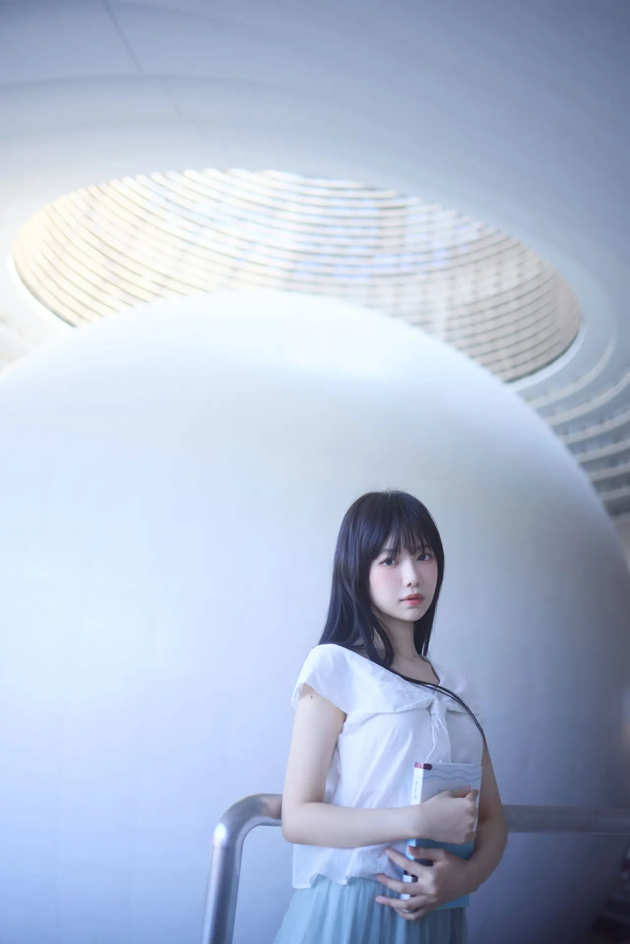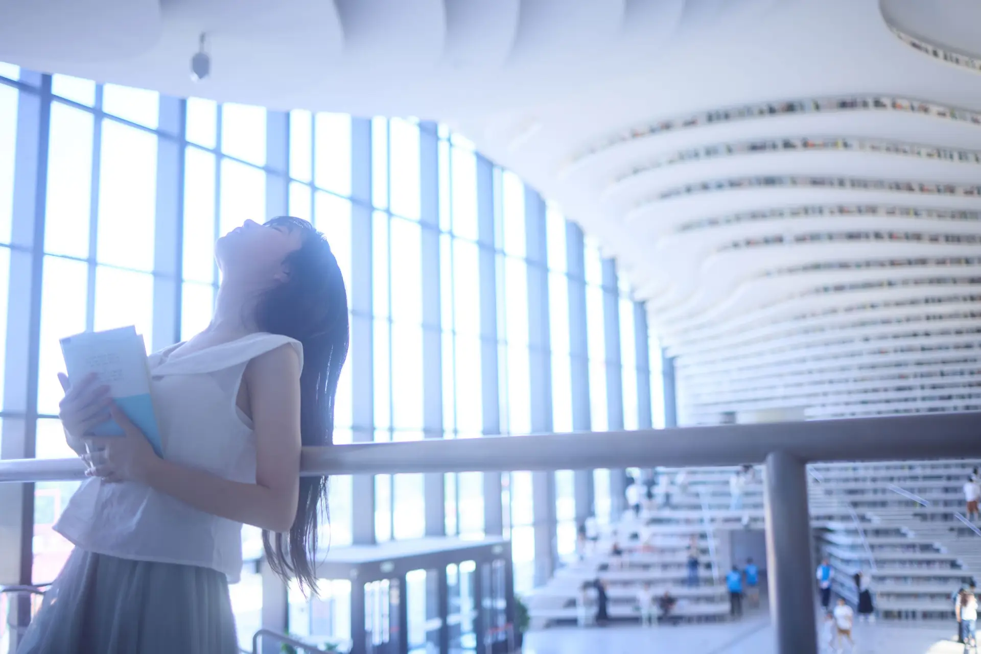 Shika Xiaolulu: Elegant Beauty in a Modern Library, A Captivating Serene View