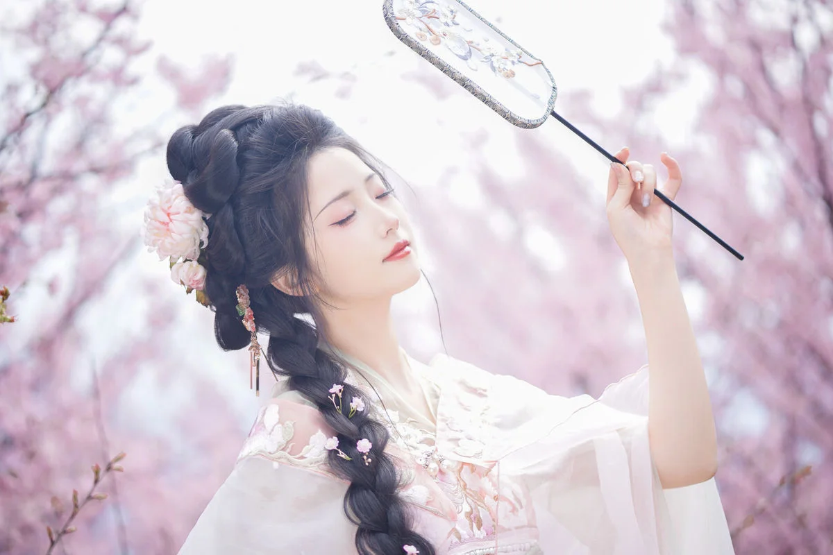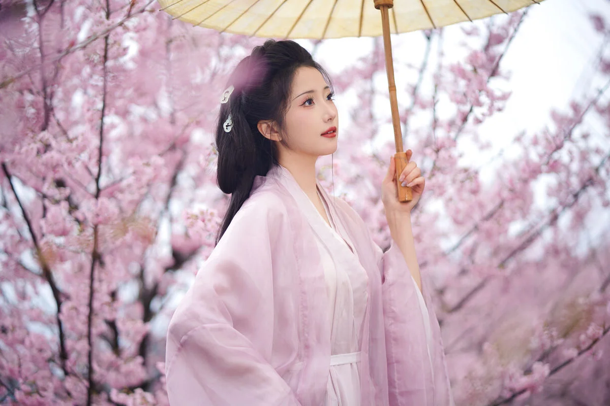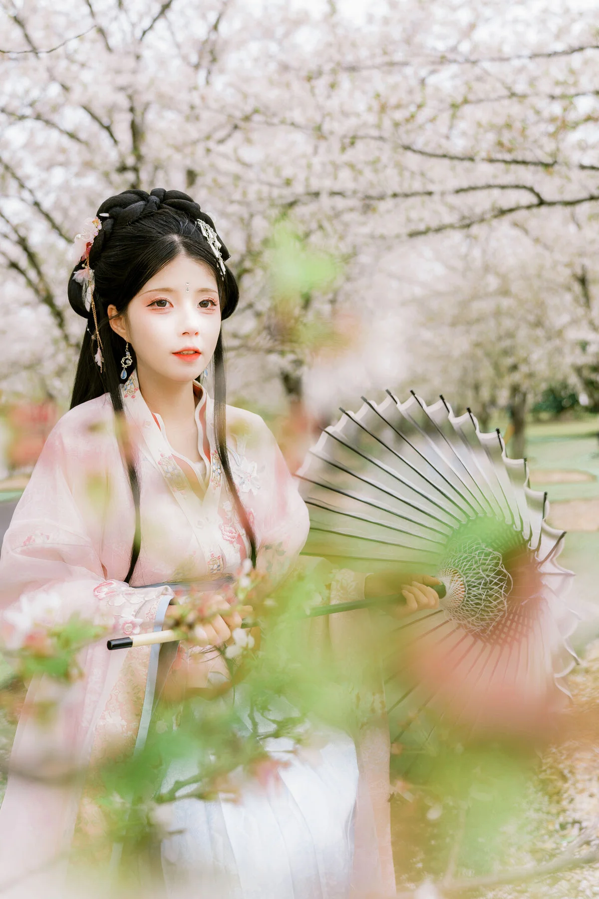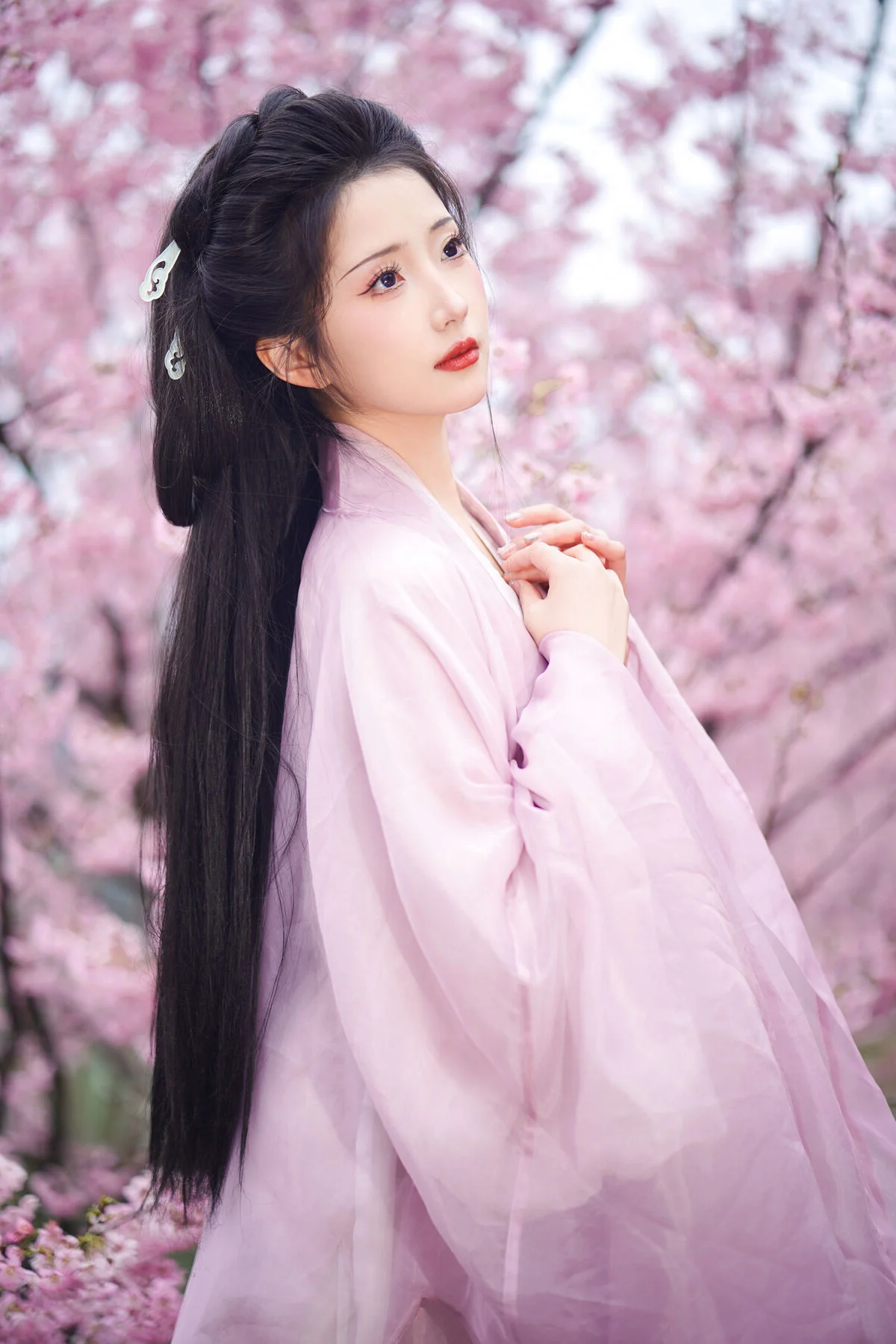 Immersed in the soft pink hues of blooming cherry blossoms, Tu Ya W emerges as a captivating vision of classical grace. This visual piece evokes a profound sense of tranquility, as if time itself has paused to honor such ethereal beauty. Wearing a delicate Hanfu crafted from fine silk with intricate embroidery, the outfit perfectly complements the dreamy natural backdrop, enhancing the model's radiant complexion. Her serene expression and gentle gaze create a poetic aura, reminiscent of romantic tales from ancient literature. The artistic interplay of natural light and a soft-focus composition highlights the intricate details of her floral hair accessories and traditional fan, showcasing a refined aesthetic taste. This collection is a true inspiration for those who appreciate the blend of traditional fashion and the fleeting beauty of spring. Every frame captures a moment of pure artistic language, blending the soul of nature with a sophisticated visual style that is both nostalgic and timelessly elegant.#CherryBlossomVibes #HanfuFashion #YiTuYu #SpringAesthetic #ArtisticPhotography #TuYaW