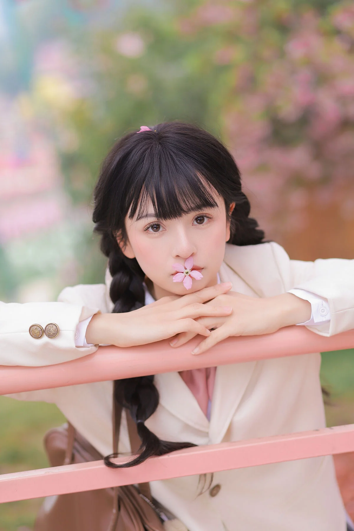 Capturing the essence of a fleeting spring morning, this image transports us to a world of soft pastels and youthful nostalgia. The girl, dressed in a classic JK school uniform, embodies a timeless elegance that perfectly complements the blooming cherry blossoms overhead. Her white blazer and pleated lavender skirt create a refreshing palette, reflecting a sophisticated yet innocent fashion sense that is highly popular in contemporary Asian street style. The choice of braided hair adds a touch of playfulness to her serene expression, making the overall vibe feel like a scene from a romantic coming of age movie. The composition, with the soft pink railing and the blurred floral background, emphasizes a minimalist yet emotional aesthetic. Every detail, from the texture of her outfit to the gentle lighting, is carefully curated to evoke a sense of peace and wonder. It is a beautiful celebration of natural beauty and the artistic language of fashion, where the environment and the subject blend into a single, poetic moment of tranquility.#SpringAesthetic #SchoolgirlStyle #JKUniform #PortraitPhotography #SoftGirlVibes #JK