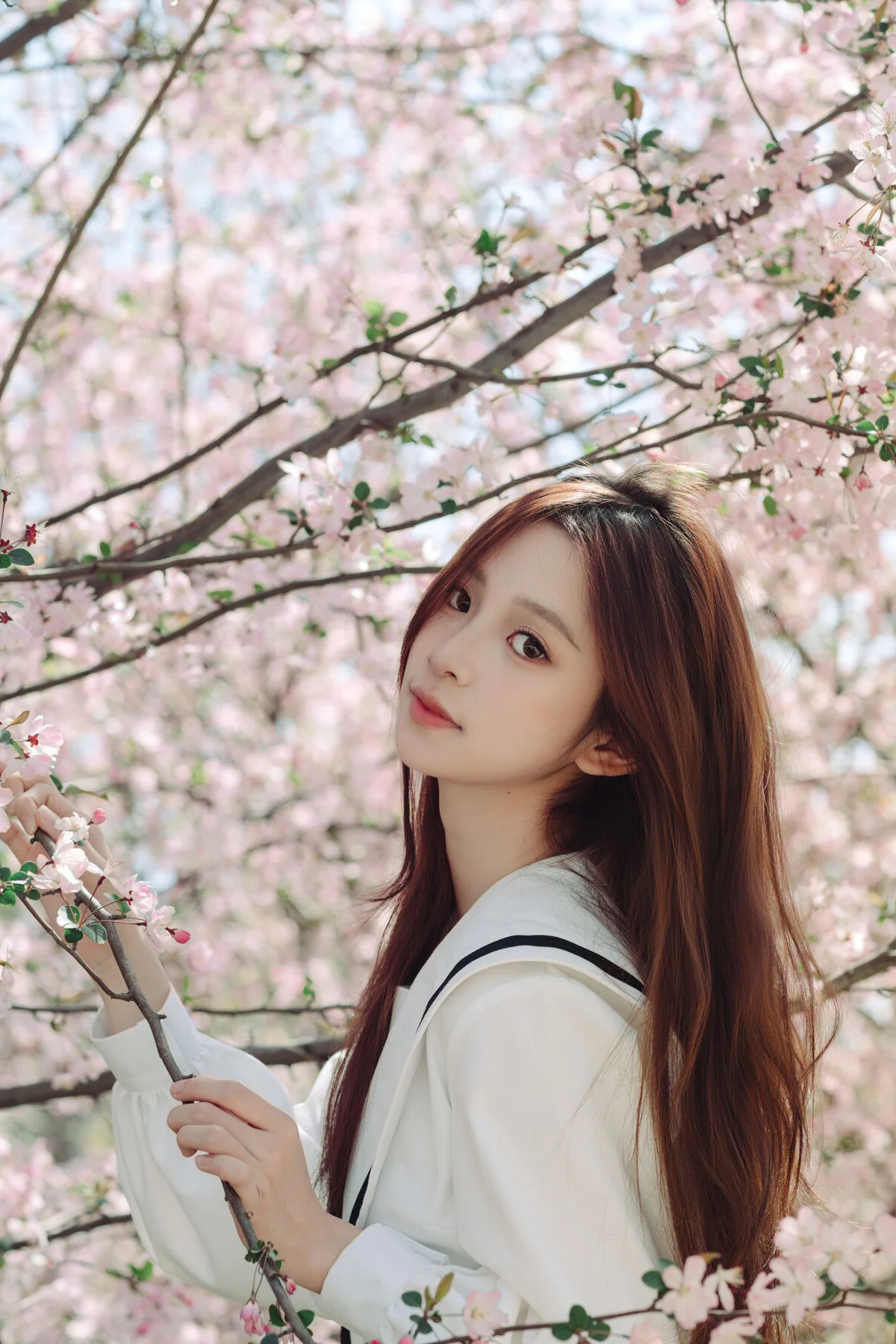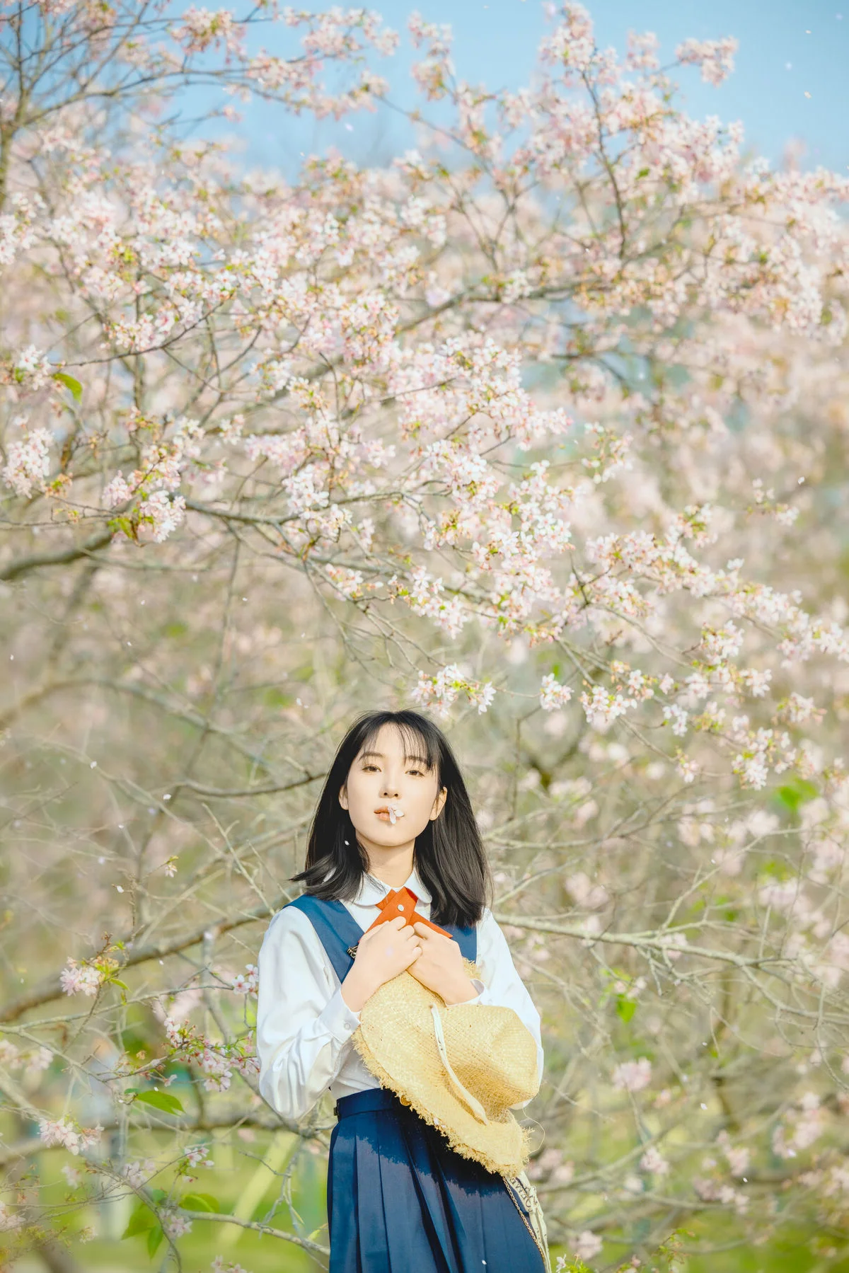Capturing the essence of a fleeting spring morning, this visual masterpiece showcases the model Minejoin in a classic JK uniform, blending seamlessly with the delicate pink flowers. The soft, natural lighting accentuates her gentle expression and soulful gaze, creating a mood that is both nostalgic and breathtakingly beautiful. The choice of schoolgirl fashion, with its crisp white tones and structured pleats, adds a layer of innocence and timeless charm to the composition. It is a poetic exploration of youth and nature, where every fold of the fabric and every petal in the wind tells a story of quiet elegance. This collection from YiTuYu Art Language truly masters the art of visual storytelling, offering a sense of peace and inspiration for any travel or fashion enthusiast. The overall vibe is minimalist yet emotionally rich, making it a perfect example of how fashion can harmoniously coexist with the natural world, evoking memories of the most beautiful years of youth.#SpringAesthetics #JkUniform #ArtLanguage #NaturePhotography #MinejoinModel #YiTuYu