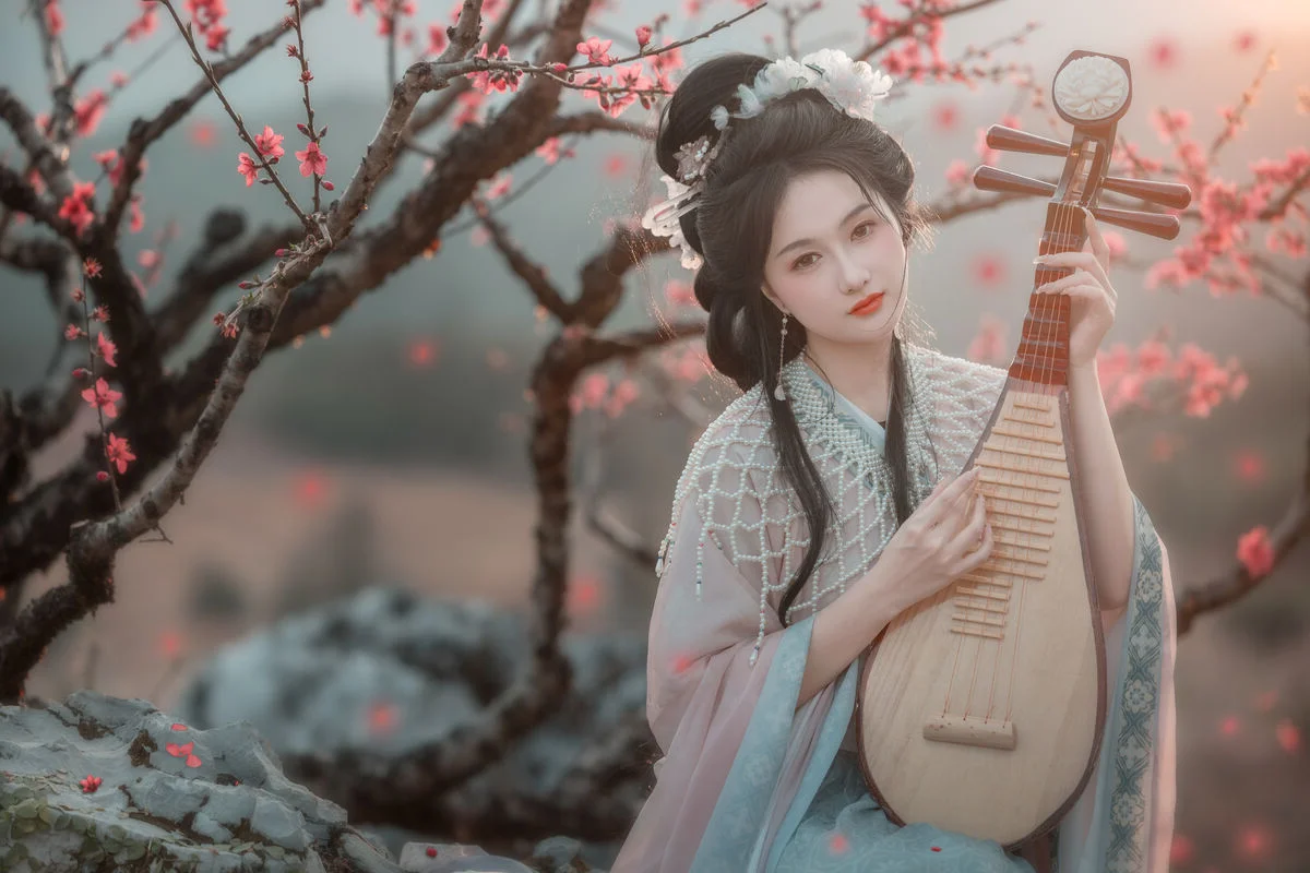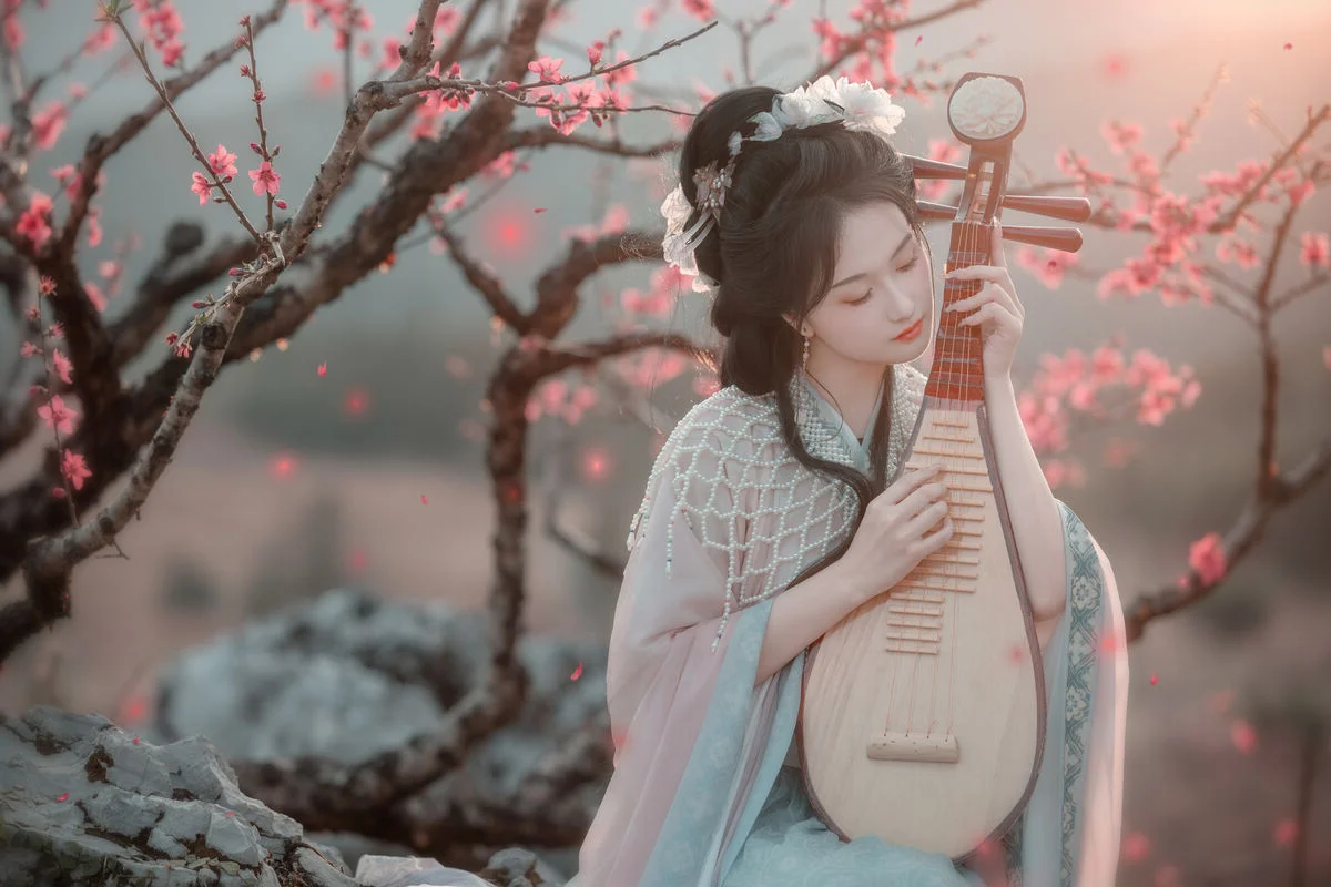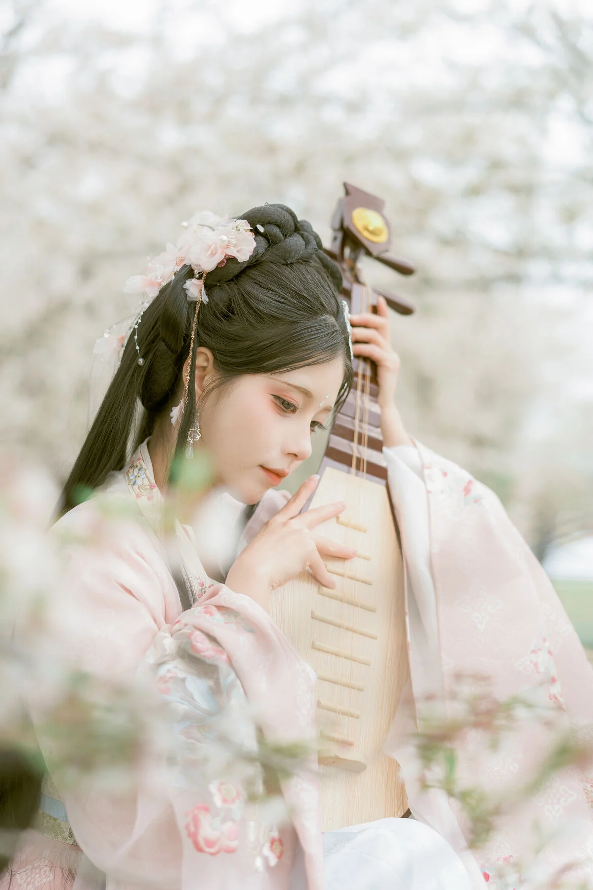 Stepping into a dreamlike spring morning with Gu Yan Yi in the latest YiTuYu Art Language Vol.8886 collection. Under the soft canopy of blooming cherry blossoms, she embodies the grace of a classical muse holding a traditional lute. The visual language here is one of pure serenity and poetic beauty. Her Hanfu, crafted from delicate fabrics in ethereal shades of pastel pink and white, flows naturally with the gentle breeze, mirroring the falling petals like snow. The artistic direction emphasizes a soft focus and airy mood, highlighting her expressive eyes and elegant posture. This aesthetic choice perfectly captures the essence of Hanfu fashion, where every fold of cloth and every floral accessory tells a story of heritage and refined taste. It is an invitation to slow down and appreciate the fleeting beauty of nature combined with the timeless allure of traditional artistry, creating a nostalgic yet refreshing vibe for the soul.#EtherealBeauty #SpringAesthetic #TraditionalFashion #OrientalArt #VisualStorytelling #YiTuYu