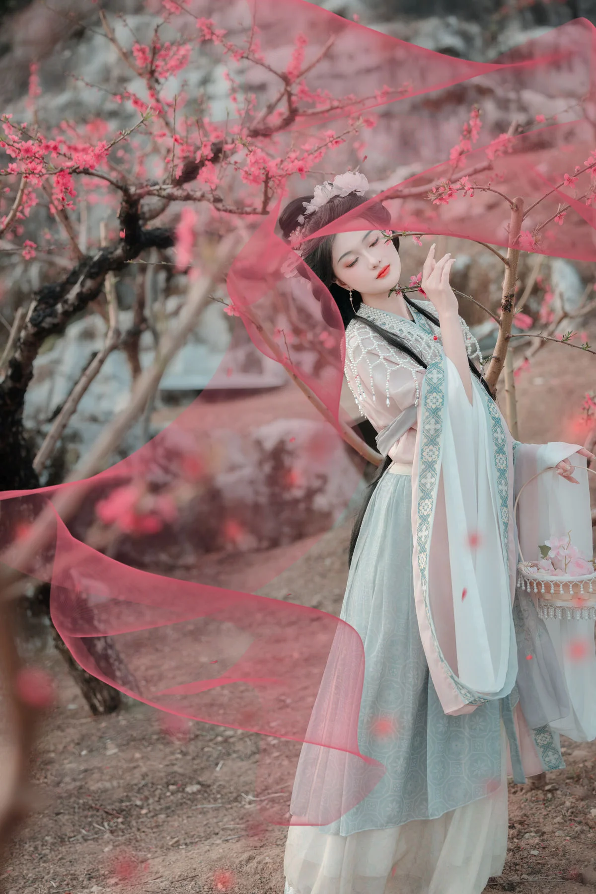 Stepping into a dreamlike spring morning, the muse Gui Yuan Ba Bao Zhou captures the essence of ethereal beauty in the YiTuYu Vol.8891 collection. Dressed in a flowing Hanfu featuring a delicate gradient of peach pink and vibrant sunset orange, she stands gracefully amidst a canopy of blooming blossoms. The lightweight chiffon fabric dances with the gentle breeze, reflecting a sophisticated sense of style that honors traditional aesthetics. Her gentle expression and the classic round fan in hand evoke a sense of nostalgia and poetic romance, as if she has just stepped out of an ancient painting. The soft natural lighting enhances the pastel tones of the scene, creating a visual symphony of color and emotion. This artistic portrayal is a celebration of spring renewal and the timeless elegance of cultural fashion, inviting the viewer to lose themselves in a world of tranquility and floral enchantment.#HanfuFashion #SpringAesthetic #EtherealBeauty #CulturalHeritage #FloralPhotography