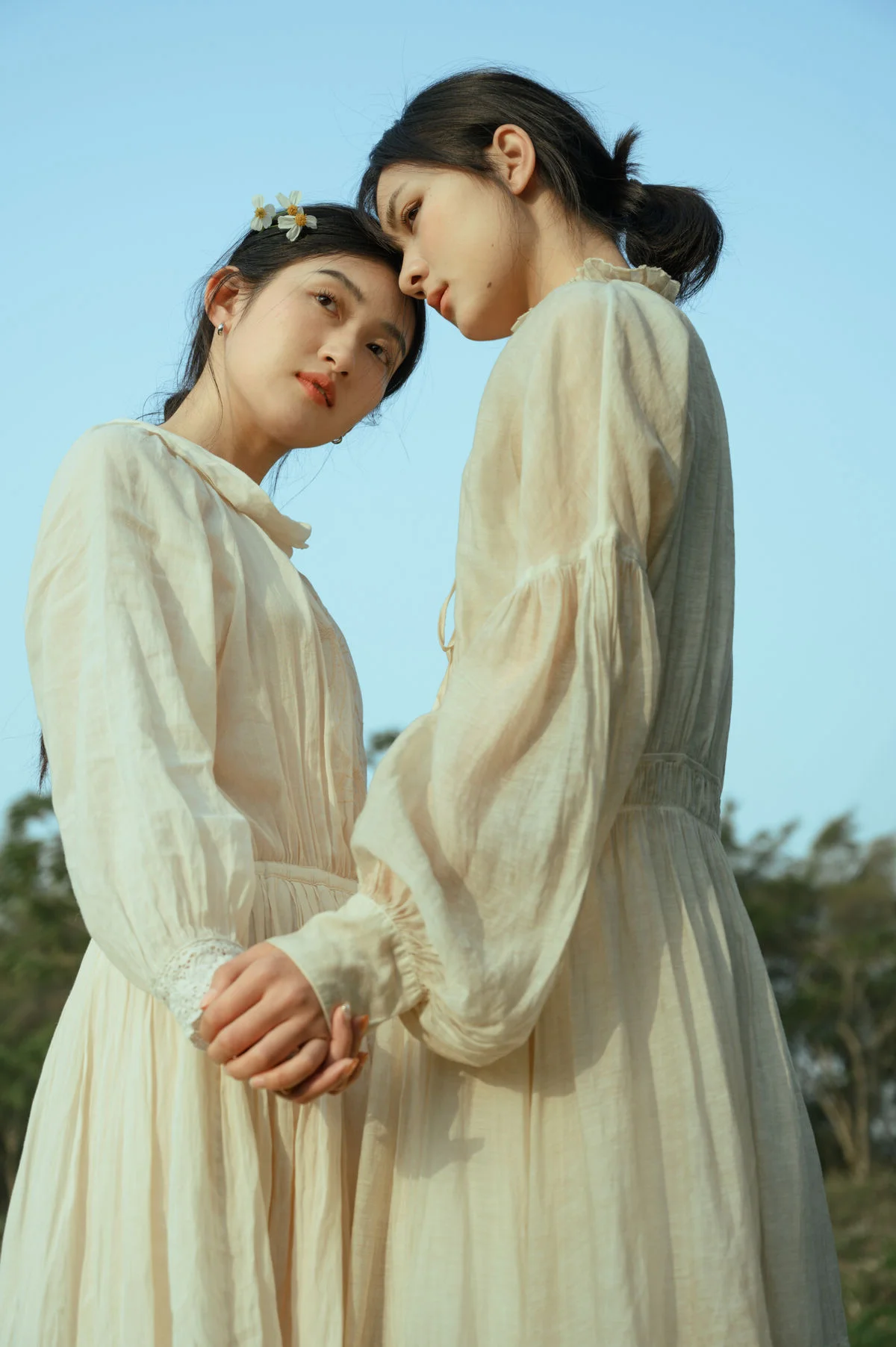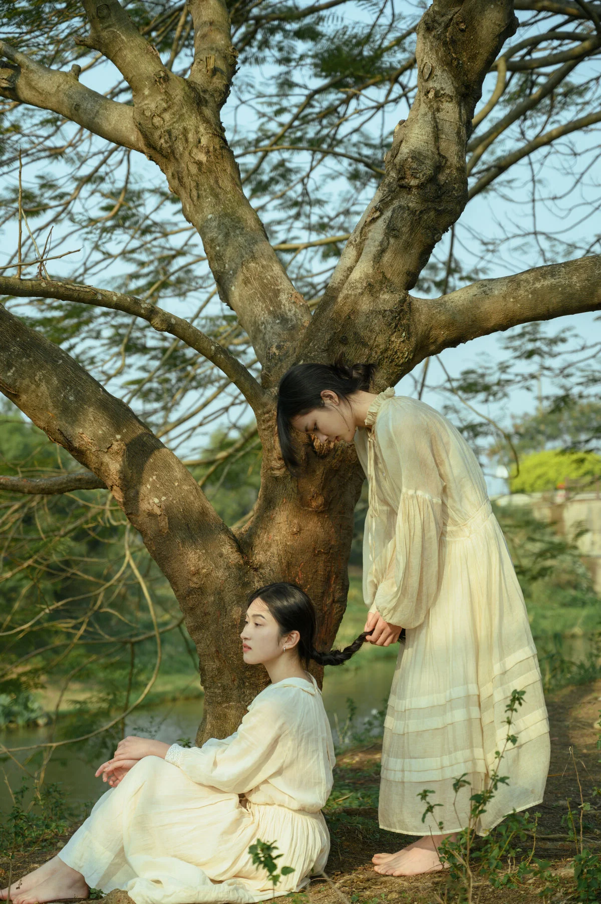 Stepping into a dreamlike spring afternoon where the golden sunlight filters through the budding branches, this visual story captures the essence of pure freedom. The artistic direction of this collection highlights a perfect harmony between human grace and the raw beauty of the forest. Dressed in ethereal white flowing dresses, the models embody a Mori-girl aesthetic that is both timeless and enchanting. The lightweight fabrics catch the gentle breeze, creating a sense of movement that feels like a poetic dance. There is an undeniable charm in the minimalist styling, focusing on soft textures and neutral tones that allow the natural surroundings to shine. The composition uses the natural lines of the trees to frame a moment of quiet connection and sisterhood. It is a celebration of spring, where every detail from the soft focus to the warm color palette evokes a feeling of nostalgia and peace. This collection is a beautiful reminder of how fashion can seamlessly blend with the environment to tell a story of elegance, nature, and the simple joy of wandering.#SpringAesthetic #CottagecoreStyle #ArtPhotography #EtherealVibes #YiTuYu