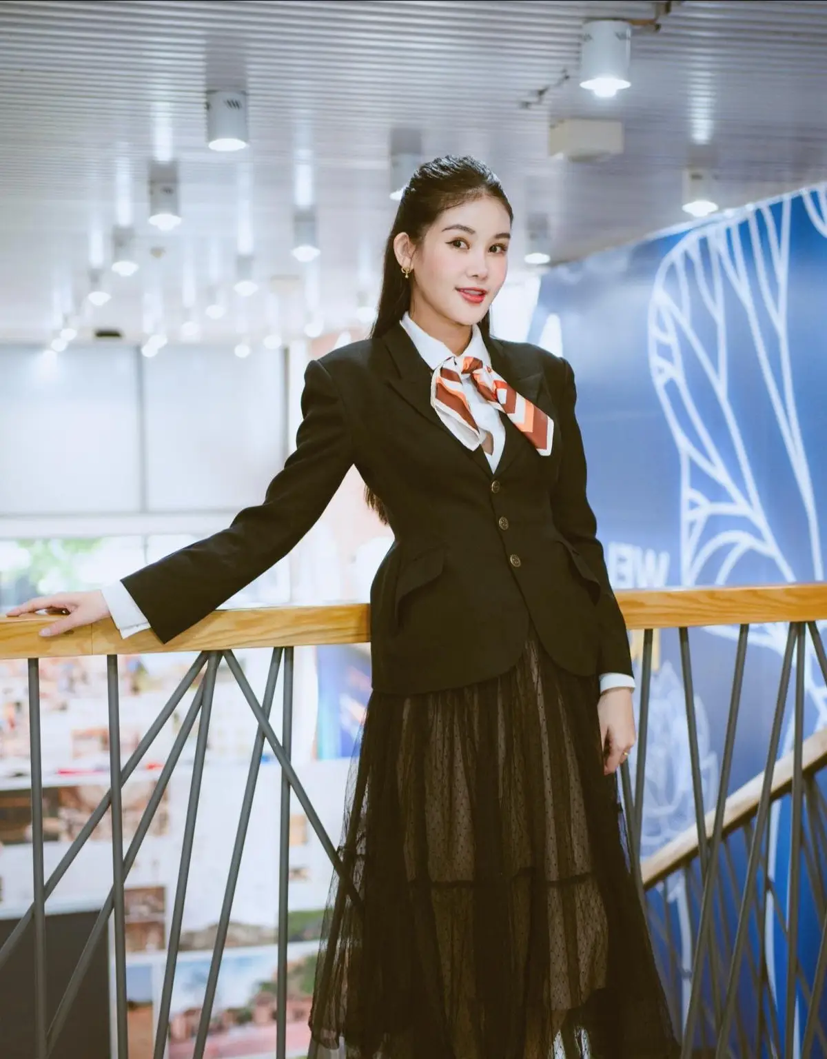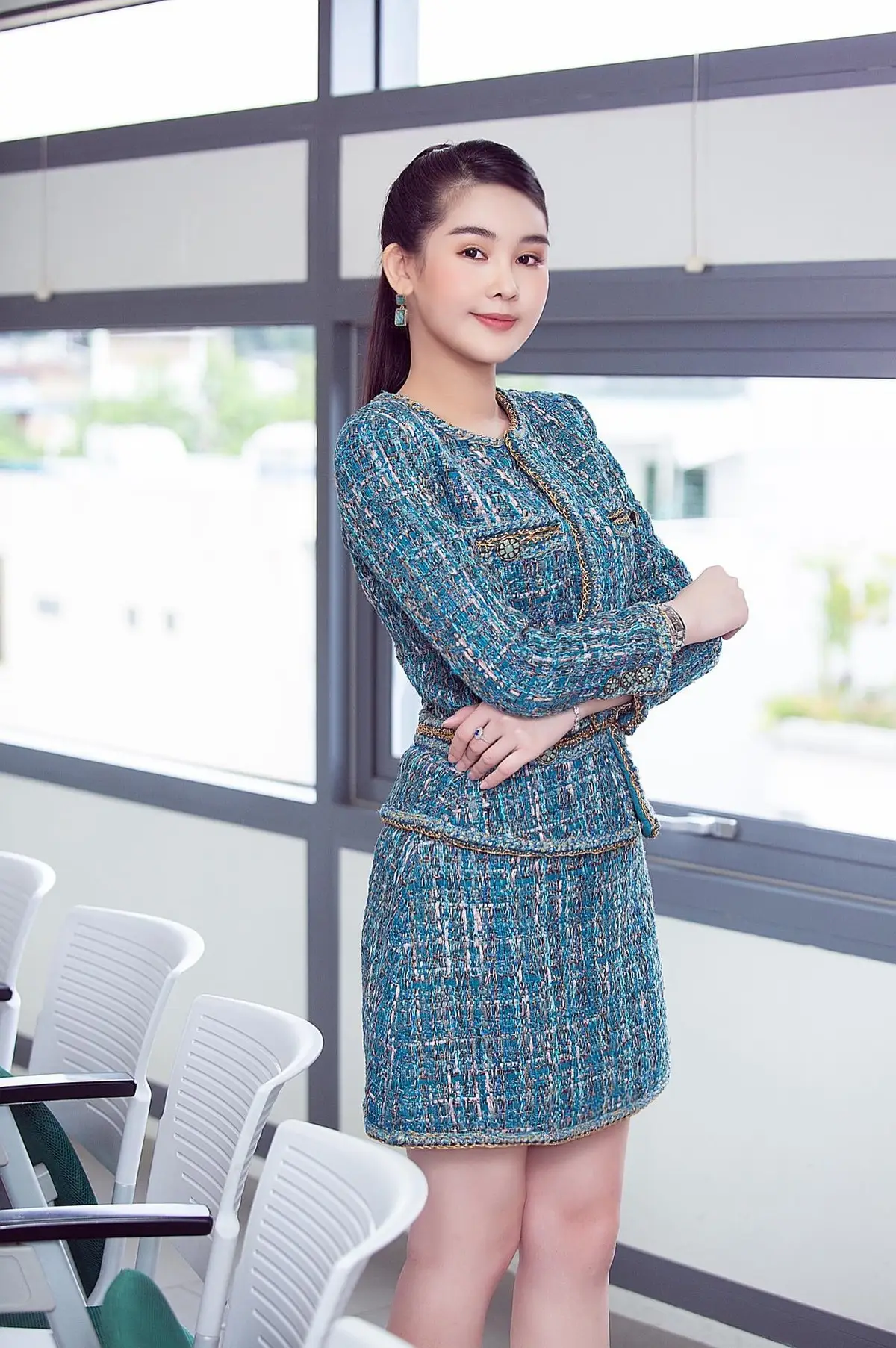 This photo celebrates the elegant and professional beauty of Pham Ngan Anh in her role as a lecturer. She exudes confidence, dressed in a chic black blazer paired with a crisp white shirt and a sophisticated striped tie, showcasing her impeccable fashion sense perfectly suited for an academic environment. The image not only highlights her personal style but also hints at the special rules she applies in the classroom. These unique principles not only help her manage classes effectively but also inspire students to engage and learn. Combining her expertise with a captivating demeanor, Ngan Anh is establishing herself as a modern, strong-willed female lecturer who consistently leaves a distinctive mark. She serves as a role model of success and professionalism, drawing public interest in both her teaching career and personal life.
