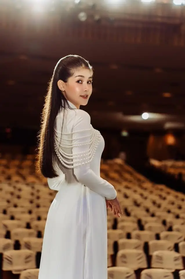 This photo captures a graceful moment of a female student in the traditional white ao dai. Her pure and gentle beauty is enhanced by the pristine attire a symbol of Vietnamese culture. Soft light illuminates her delicate features and long dark hair creating an image that is both modern and deeply classic. The girl stands in a peaceful setting perhaps a school corridor evoking memories of innocent school days and dreams. The ao dai is not just clothing but also a source of pride a symbol of elegance and grace for Vietnamese women. Looking at the picture viewers can feel the tranquility the fresh beauty and the unique elegance of Vietnamese female students. This is a beautiful moment honoring traditional beauty and youth.