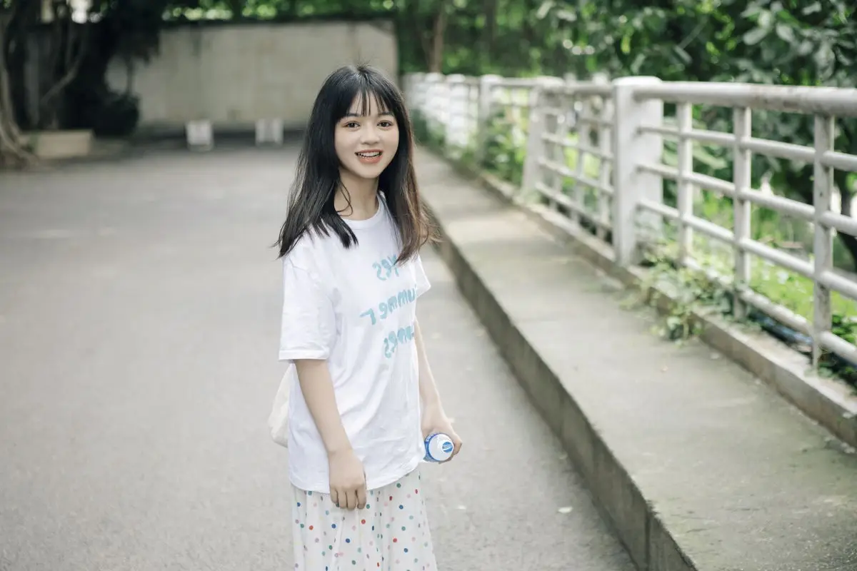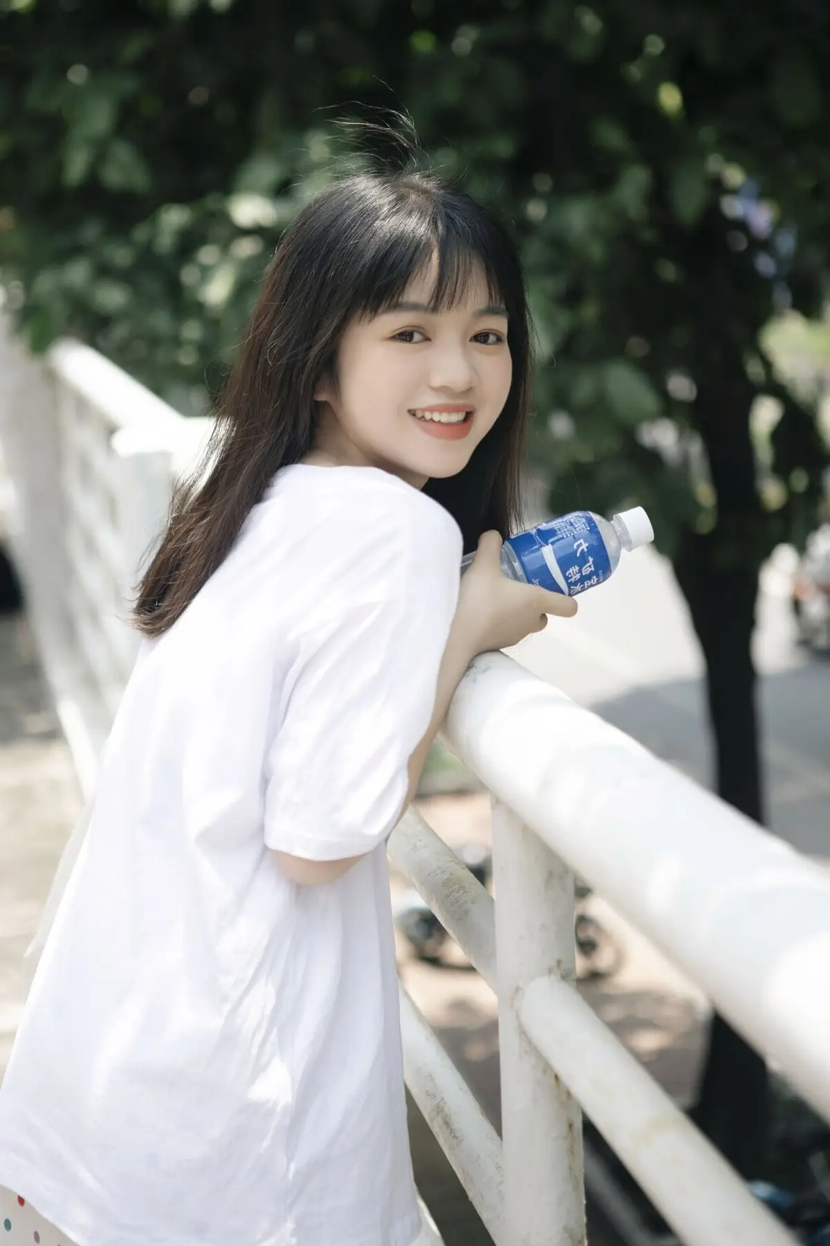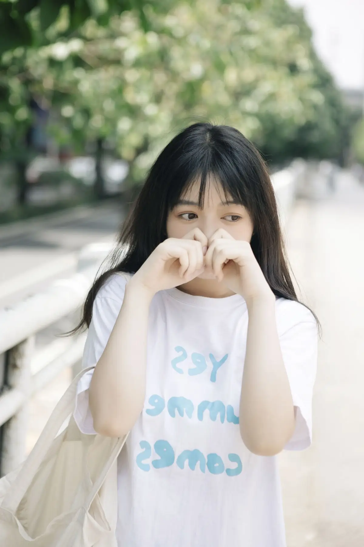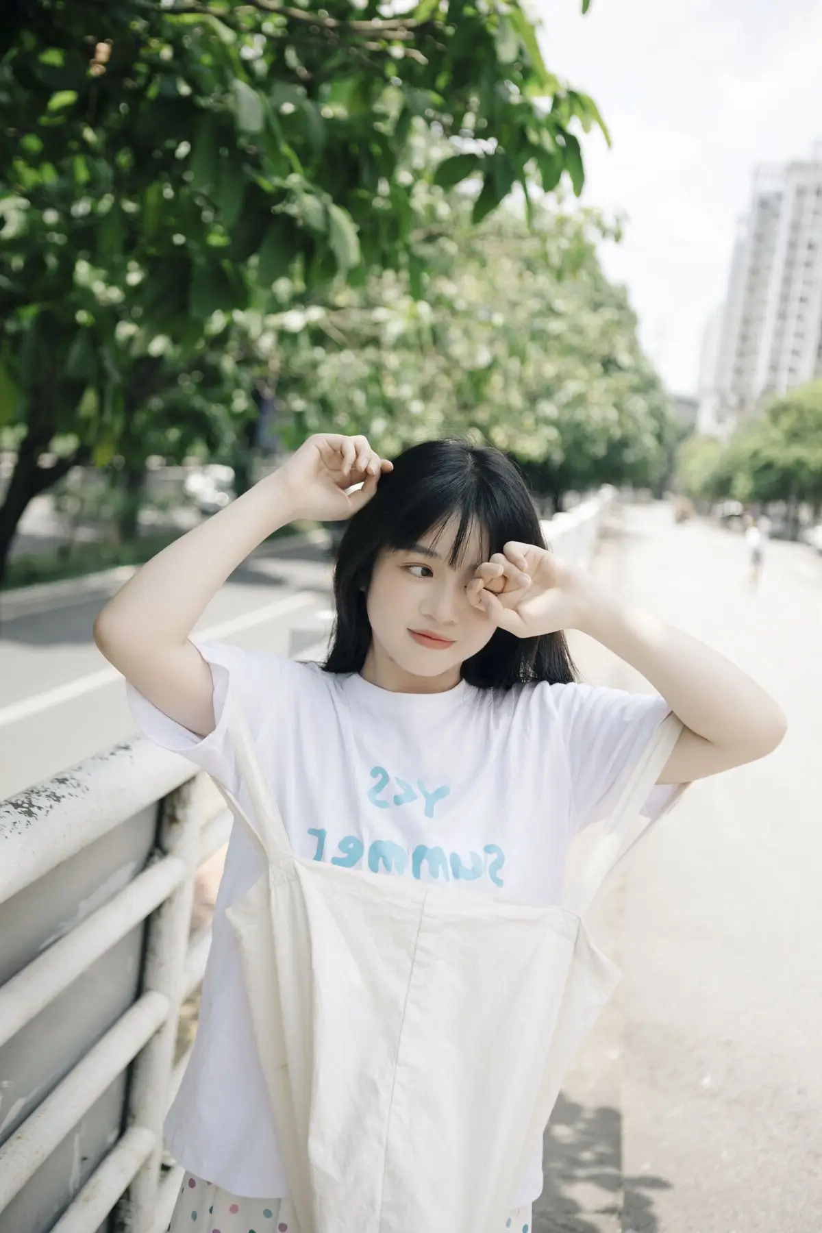 This captivating image captures Kikooo's vibrant spirit in the YiTuYu Vol.8664 collection. The young model radiates a fresh and natural beauty embodying the lively energy of summer. Dressed in a simple white t-shirt she playfully shields her eyes from the sun creating an endearing and charming pose. The urban backdrop featuring lush green trees and distant buildings beautifully contrasts with her serene presence highlighting a harmonious blend of human grace and city life. Every gesture and glance from Kikooo exudes an alluring charm inviting viewers to immerse themselves in this emotionally rich artistic world. This photograph truly embodies YiTuYu's Art Language perfectly showcasing youthful freshness and vitality.#Kikooo #YiTuYu #SummerVibes #NaturalBeauty #UrbanPortrait