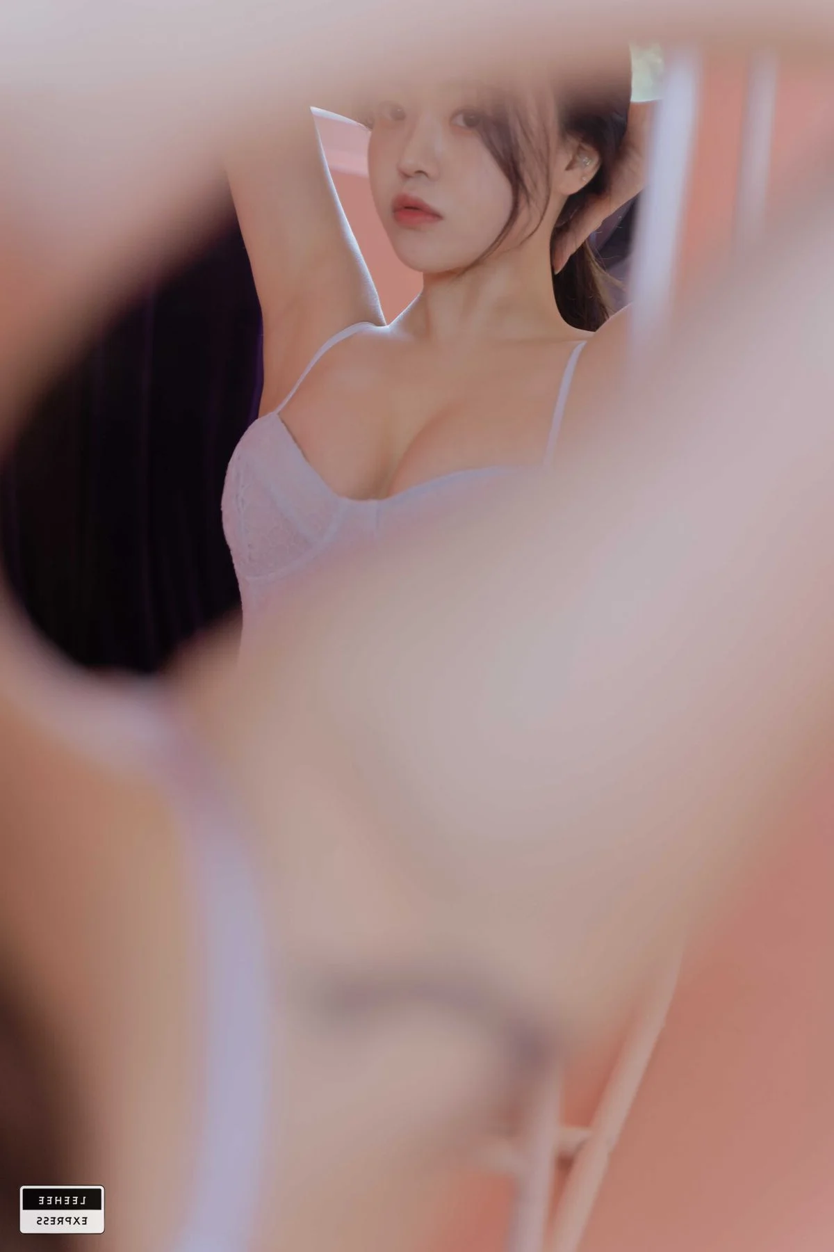 This captivating shot features Yin Tian Tian Sunny posing in a minimalist yet sophisticated bedroom setting, bathed in the soft glow of natural afternoon light. She wears a striking magenta lace lingerie set paired with a matching delicate shrug, a bold color choice that perfectly complements her porcelain skin and graceful silhouette. The intricate textures of the lace combined with her poised body language create a mood of effortless sensuality and high fashion allure. The way the sunlight dances across the room highlights the artistic composition, casting gentle shadows that add depth to her dreamy expression and flowing hair. Styled with classic nude heels to elongate her frame, the entire look exudes a refined aesthetic that balances boldness with soft femininity. It is a beautiful study of light, fashion, and the magnetic presence of a woman who truly understands her personal style, making it a perfect inspiration for contemporary visual storytelling.