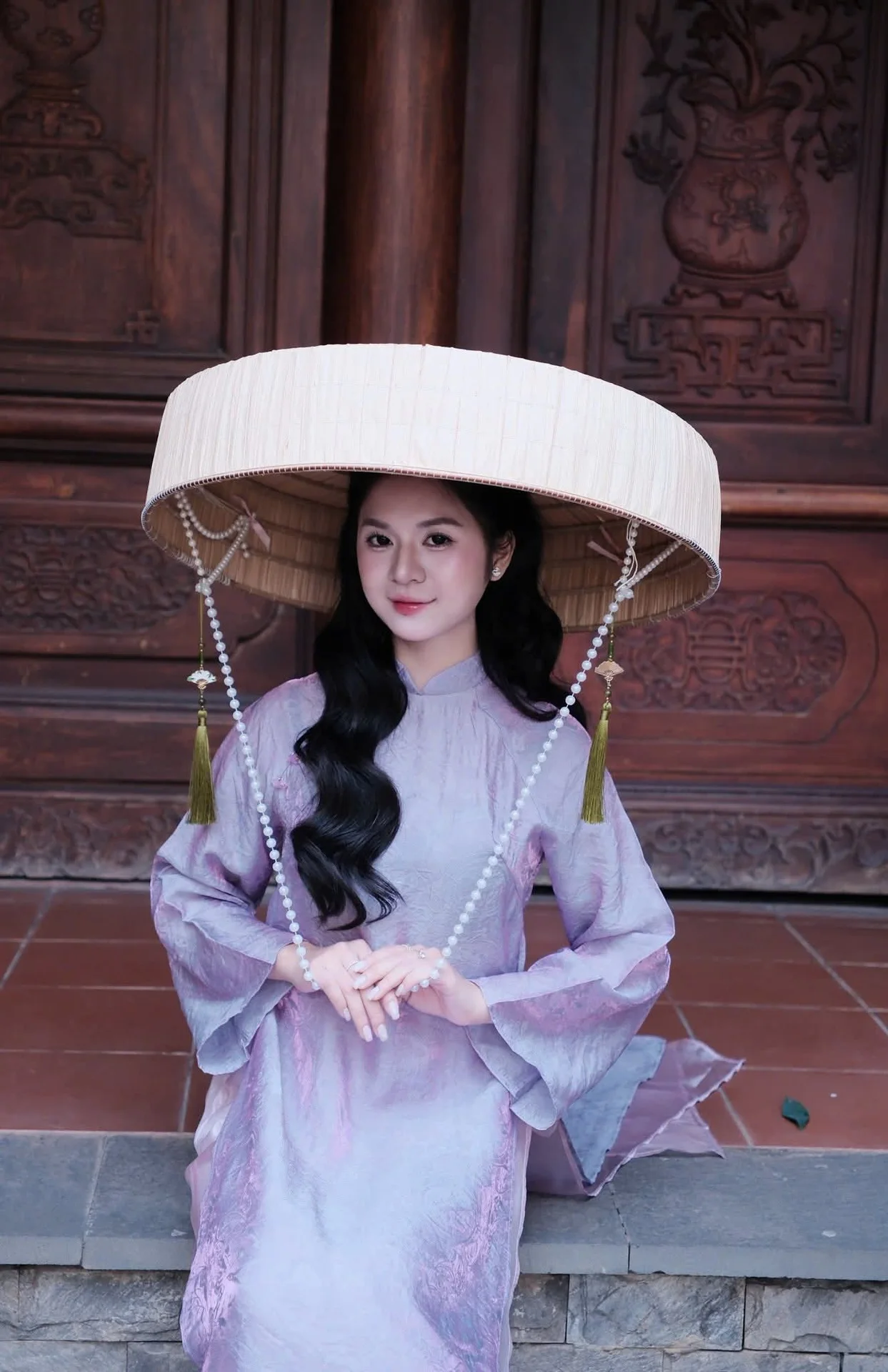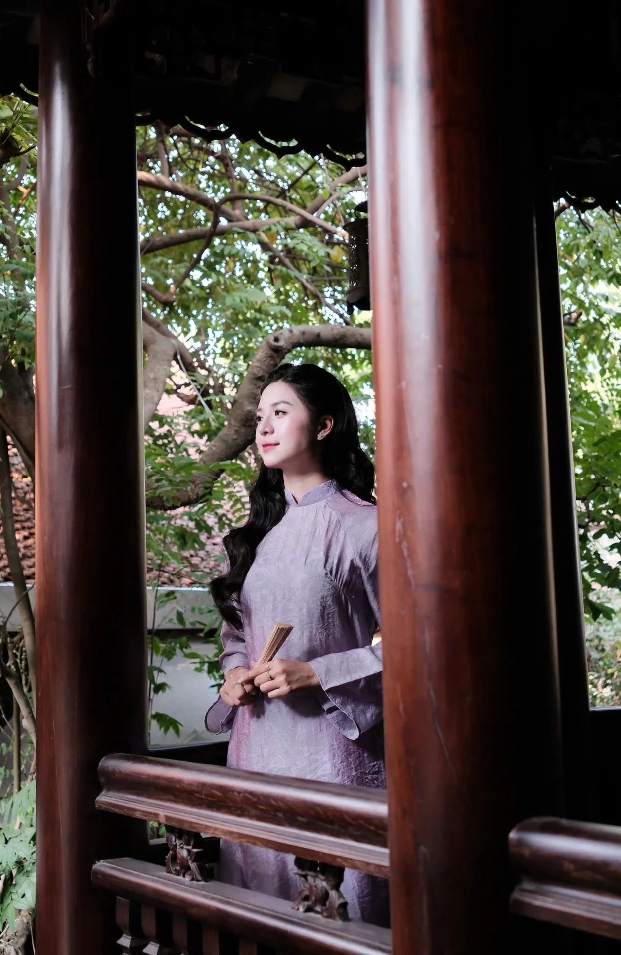 Standing amidst the quietude of traditional wooden pillars and weathered tiled roofs, the image of a young woman in a soft lavender Ao Dai unfolds like a poetic tribute to timeless beauty. Her gentle gaze and subtle smile radiate an aura of serenity, blending perfectly with the nostalgic atmosphere of the ancient surroundings. The delicate fabric of the dress, with its shimmering texture under natural light, highlights a sophisticated fashion sense that honors Vietnamese heritage while maintaining a modern, youthful charm. The composition captures a moment where architecture and human emotion intersect, creating a visual narrative filled with peace and longing. Every detail, from the way she holds the traditional fan to her cascading wavy hair, contributes to a refined aesthetic that feels both intimate and grand. This snapshot, identified as 1000029601.jpg, is more than just a portrait; it is an invitation to appreciate the harmony between cultural identity and the artistic soul in a world that often moves too fast, offering a sense of tranquility to any travel or fashion enthusiast.#Vietnamese #AoDai #TraditionalBeauty #HeritageVibes #TravelVietnam #ElegantStyle