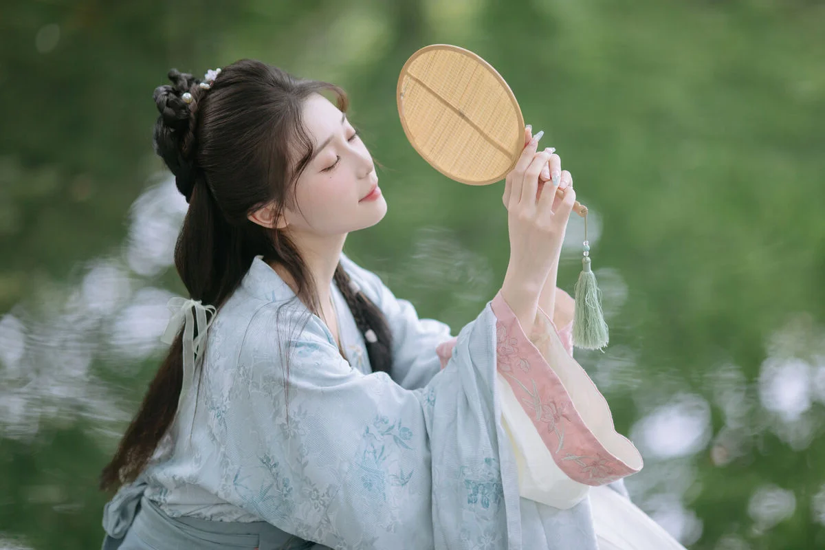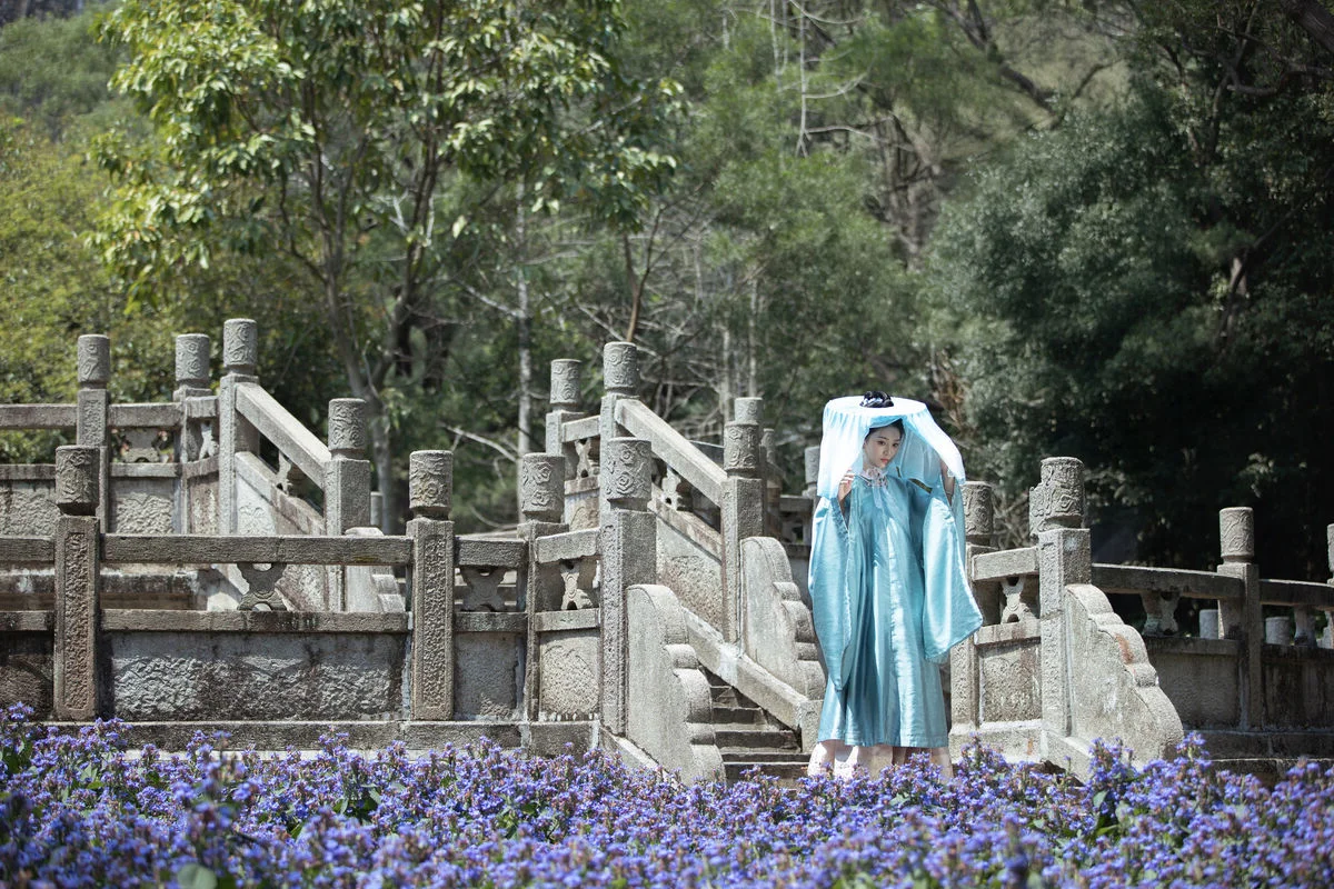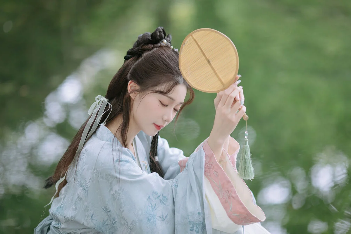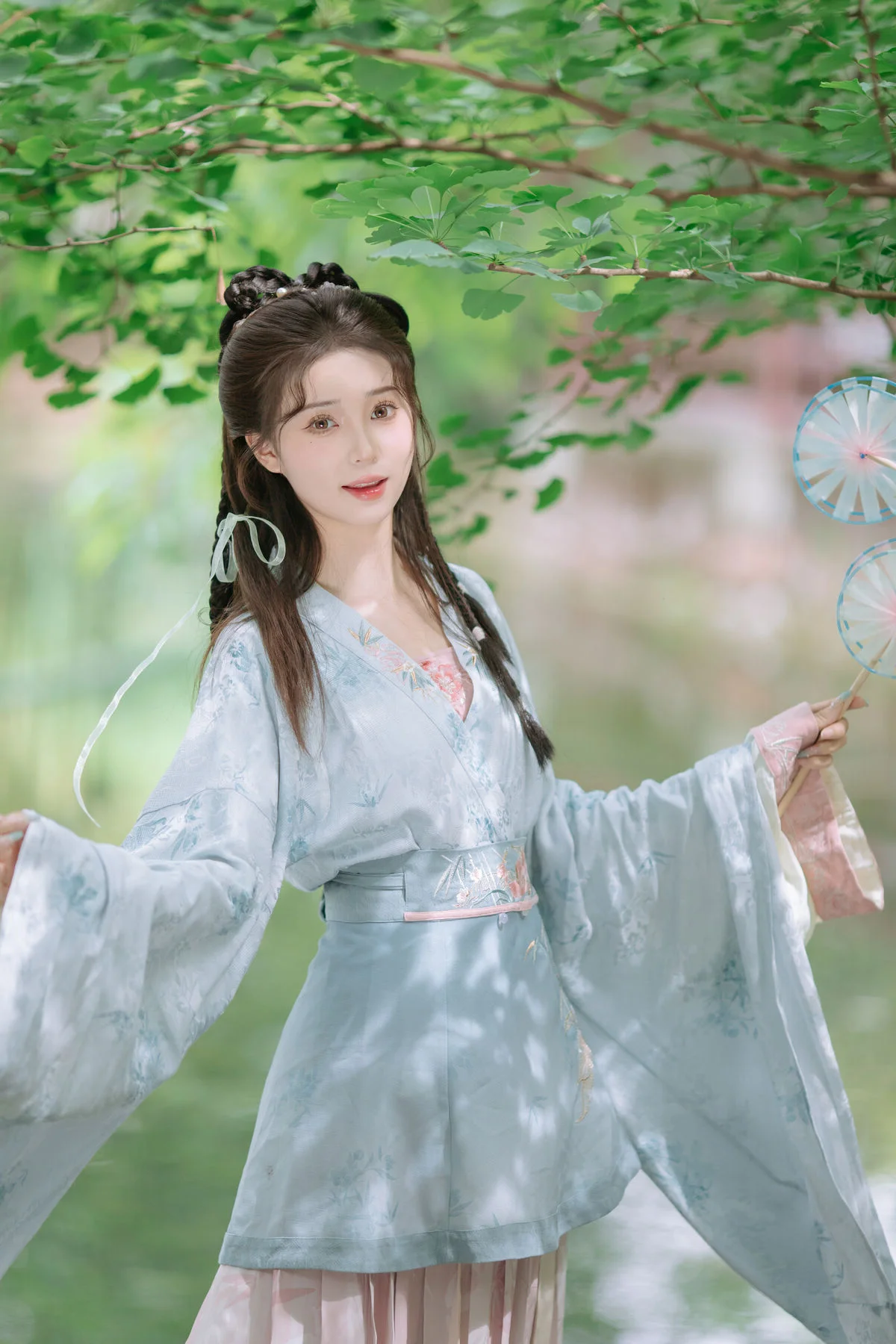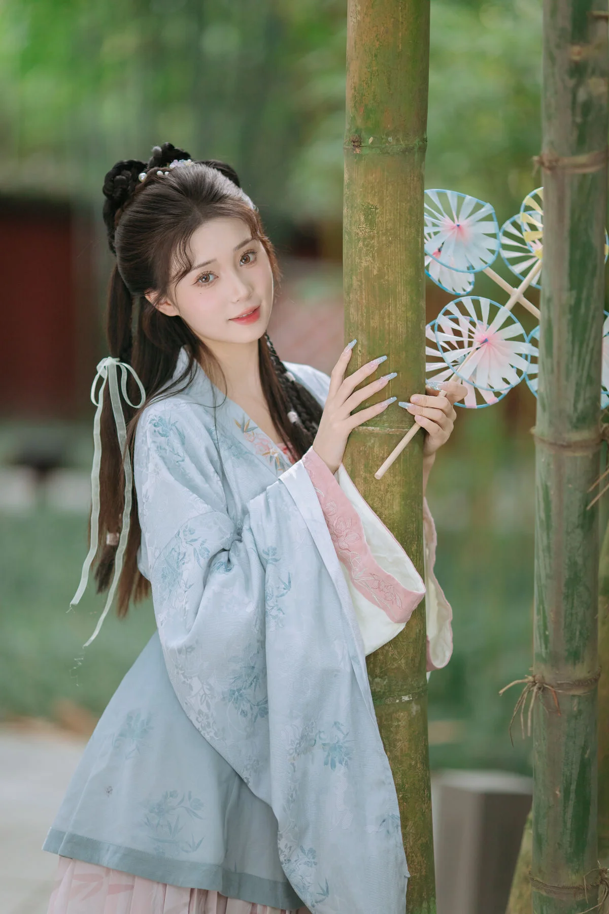 In the YiTuYu Vol.8800 photo collection Chu Yuan Yuan emerges like a muse from a fairy tale. She is adorned in delicate traditional Hanfu attire in soft pastel blue hues harmonizing beautifully with the natural scenery. Her elaborate updo is embellished with traditional accessories and her graceful smile exudes a gentle yet elegant charm. Holding a unique floral fan prop Chu Yuan Yuan poses expressively amidst a lush green backdrop evoking a poetic work of art. This collection perfectly blends human beauty with natural landscapes vividly showcasing the artistic language of YiTuYu.#ChuYuanYuan #YiTuYu #Hanfu #TraditionalBeauty #AsianModel