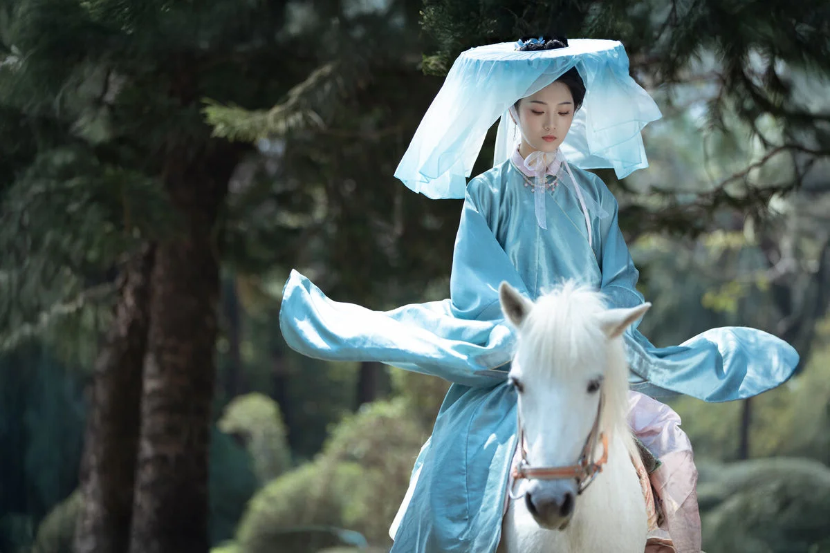 In this captivating image from YiTuYu Vol. 8831 model Zhi Zhi Qi embodies an ethereal traditional beauty gracefully riding a white horse through a serene forest landscape. Her flowing blue robe and elegant wide-brimmed hat evoke a sense of timeless charm and mystique. The gentle stride of the horse on the grassy path surrounded by lush greenery transports viewers to a scene straight out of an ancient tale or painting. Sunlight filters through the canopy casting dappled light that enhances the magical atmosphere. This photograph beautifully merges human elegance with the majesty of nature creating a tranquil and alluring visual narrative that invites contemplation and admiration.#ZhiZhiQi #YiTuYu #TraditionalBeauty #HorsebackRiding #ForestFantasy