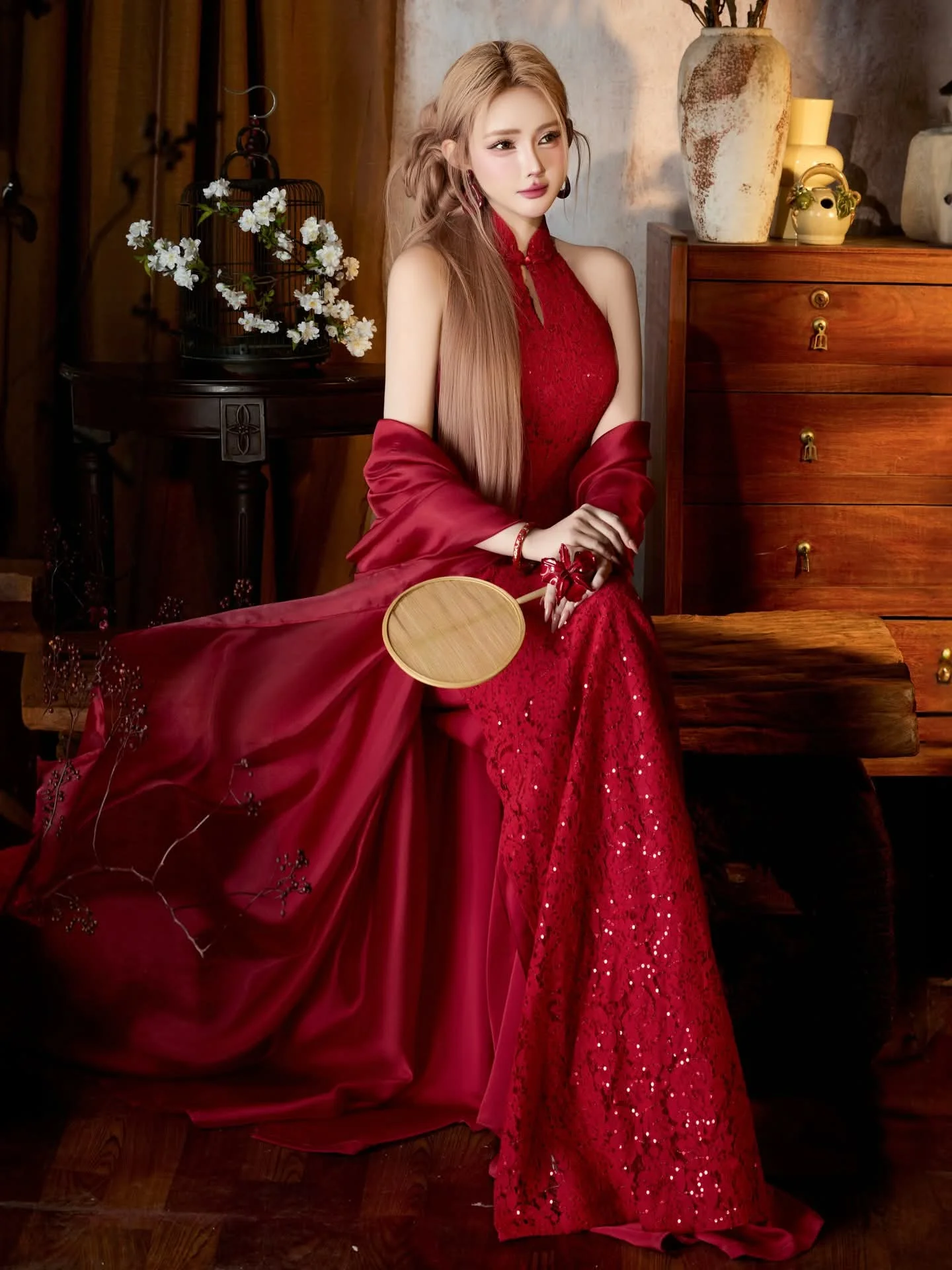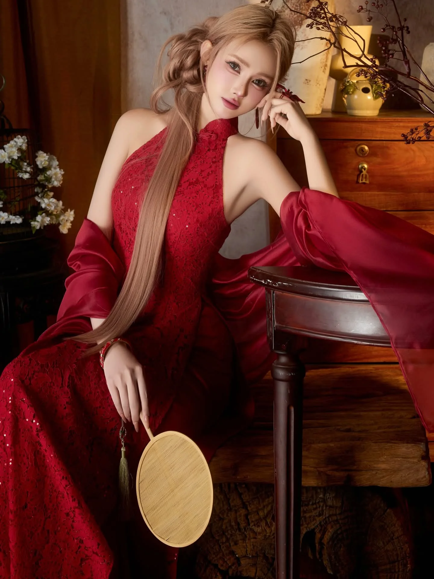 This captivating image portrays an enchanting East Asian beauty, where traditional charm blends seamlessly with modern allure. The central figure is a girl with long flowing hair, exuding elegance and grace. She wears a radiant red outfit, exquisitely designed with sparkling details that accentuate her graceful silhouette. A delicate, flowing red shawl adds softness and fluidity to her posture. In her hand, she holds a traditional round fan, a symbol of sophistication and ancient culture. The overall composition evokes a sense of both nostalgia and luxury, affirming the timeless appeal of mysterious East Asian beauty.#TraditionalBeauty #RedOutfit #EastAsianStyle #GracefulCharm #Elegance