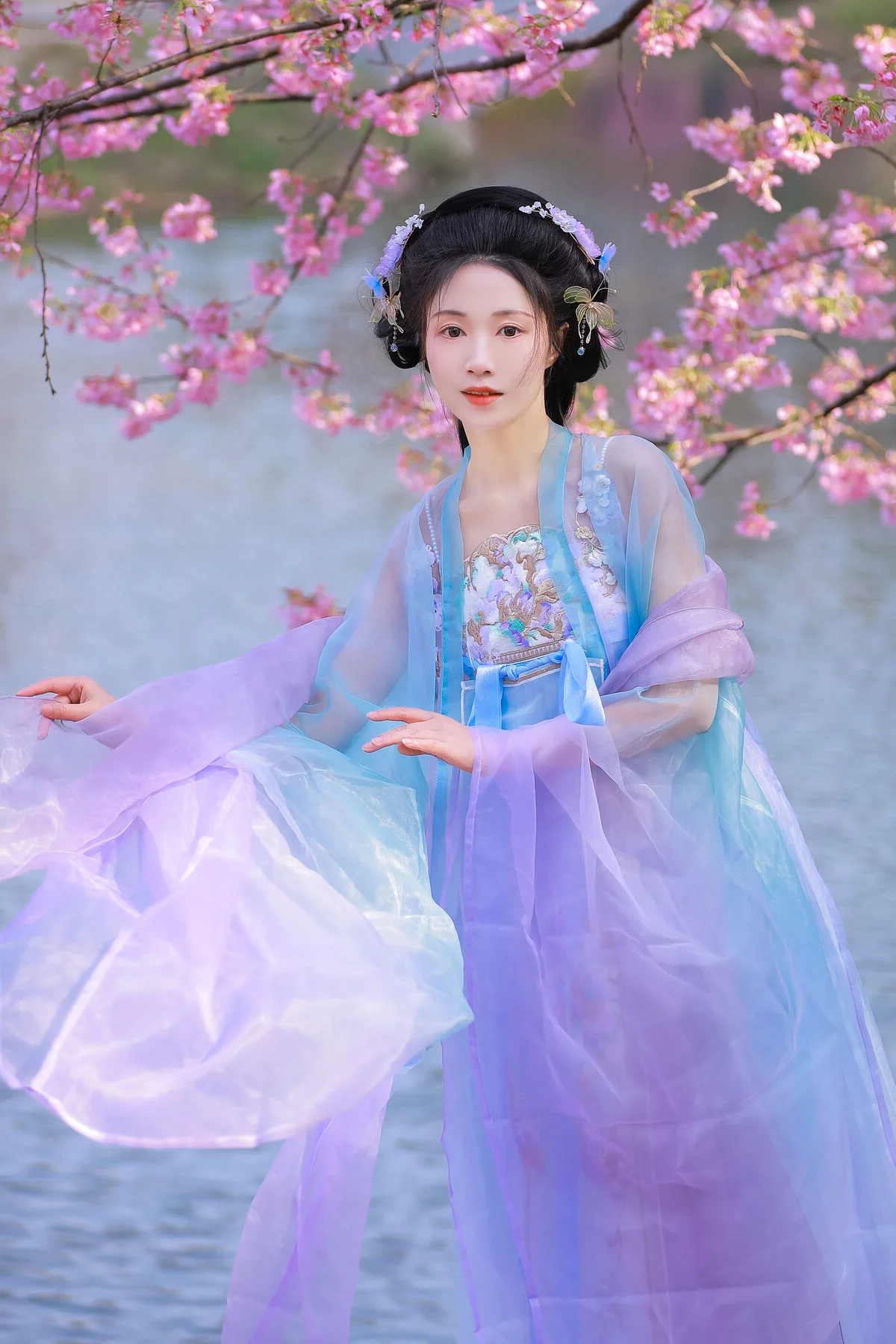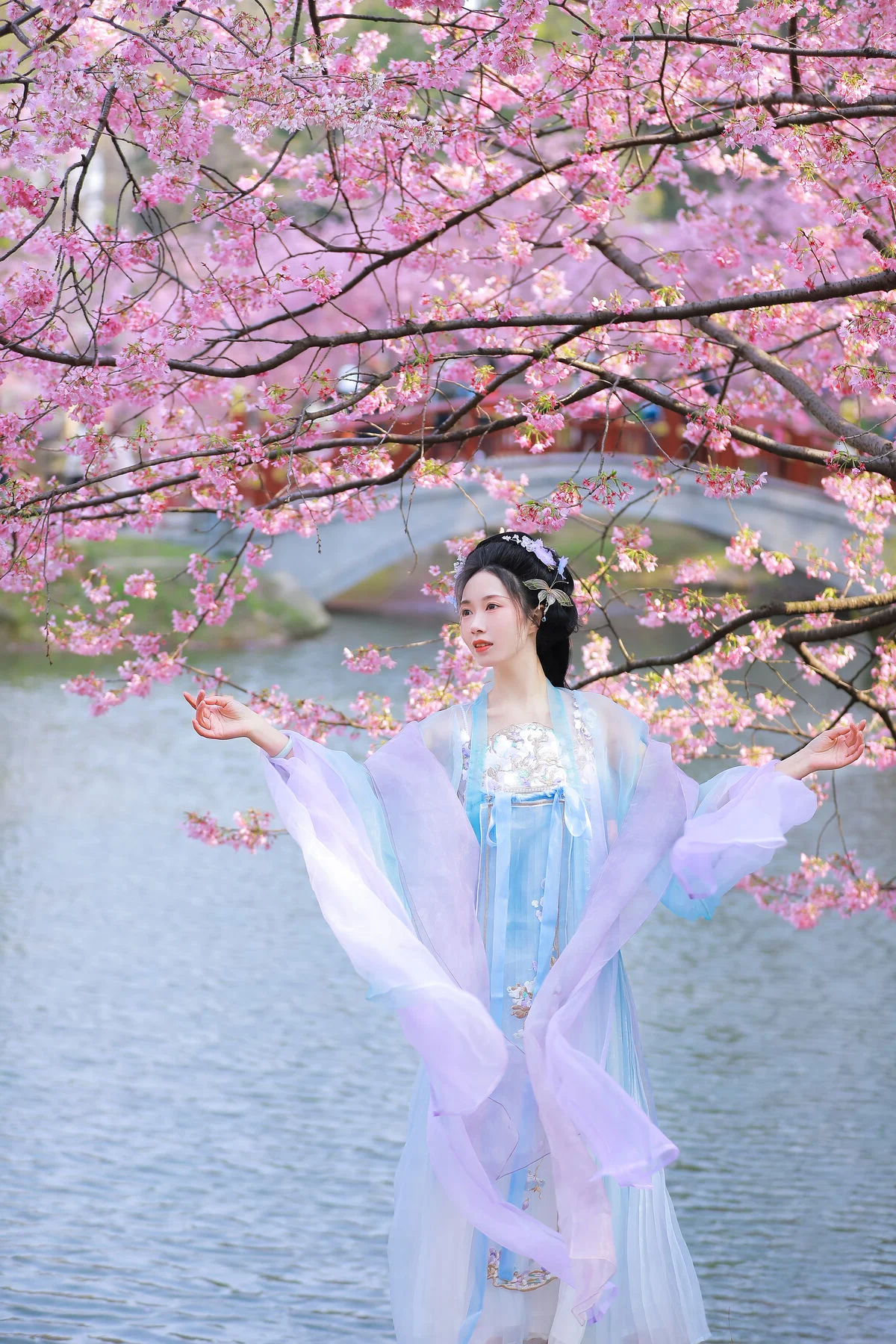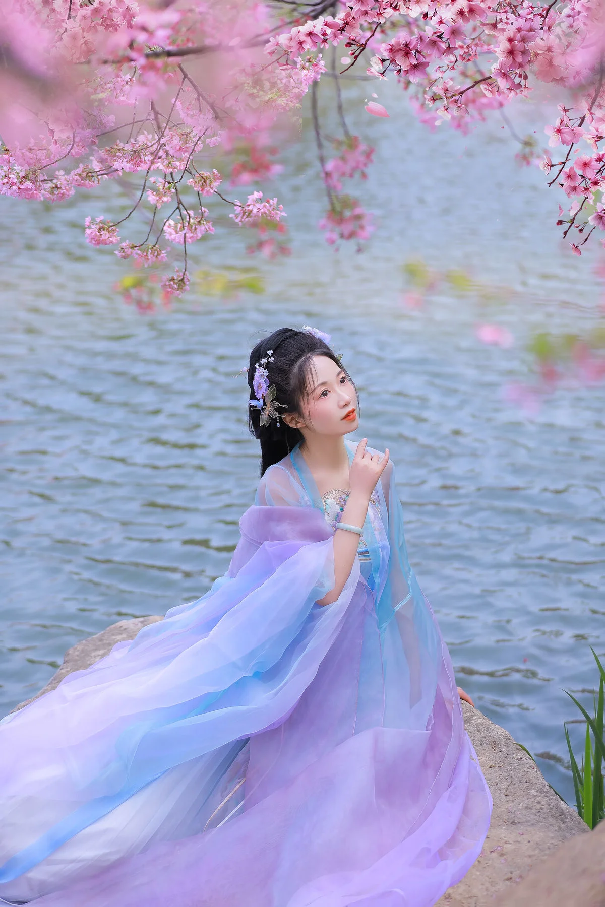 Embrace the refreshing spring season with the exclusive YiTuYu Vol.8837 photo collection, featuring the captivating model Hua Zhuang Shi Tian. She transforms into an enchanting ancient beauty amidst a breathtaking backdrop of vibrant pink cherry blossoms and tranquil waters. Dressed in a flowing Hanfu gown with mesmerizing blue and purple ombre hues, her graceful pose and delicate hand gestures exude an ethereal charm. Her elegantly styled hair, adorned with intricate floral pins, further accentuates her traditional allure and serene demeanor. This collection is not merely a harmonious blend of human beauty and nature but also a visual art language masterpiece, evoking the romantic and poetic essence of a new beginning.#HuaZhuang #ShiTian #Hanfu #CherryBlossoms #SpringVibes #TraditionalBeauty