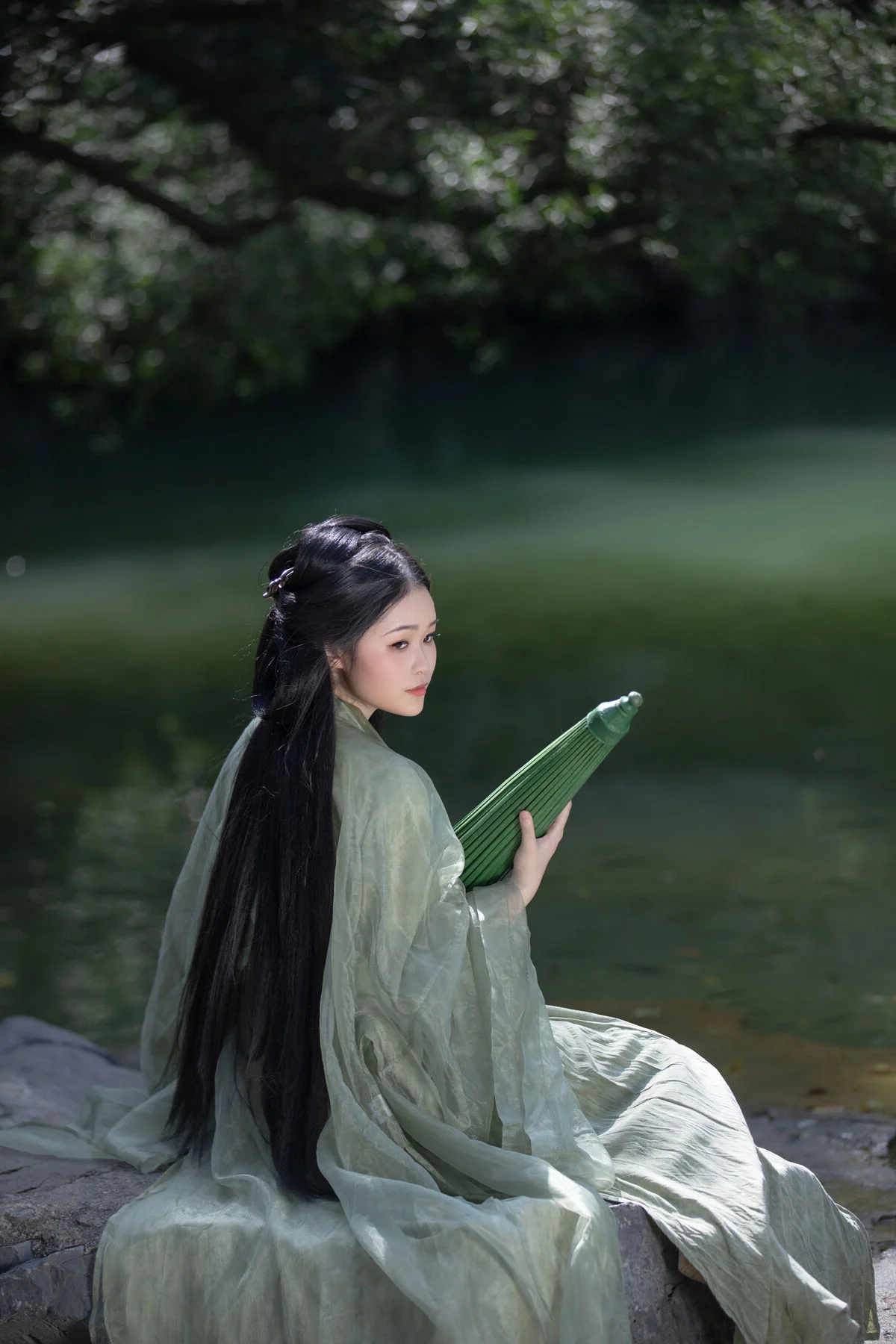 In the YiTuYu Vol8832 collection model Yi Ming emerges as a muse from a traditional ink painting Amidst a majestic natural setting with a serene pond and lush greenery she dons a delicate green ancientstyle attire creating a harmonious and poetic tableau Every gesture and gaze from Yi Ming exudes an ethereal contemplative beauty blending seamlessly with the tranquil environment Her image leaning against a tree trunk with a green leaf in hand evokes a profound connection with Mother Nature offering viewers a sense of peace and romance This is a perfect fusion of art and natural beauty#YiTuYu #YiMing #Hanfu #TraditionalBeauty #NaturePhotography