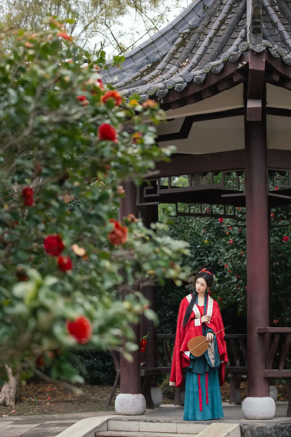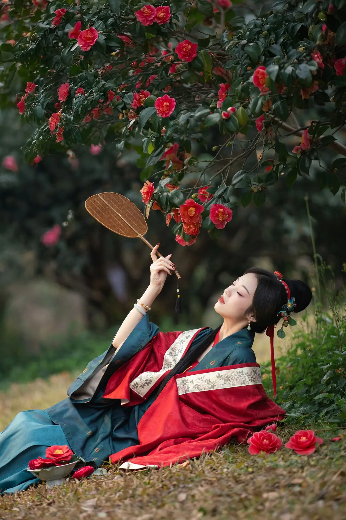 Immerse yourself in the timeless beauty of Xiao He in the YiTuYu Vol.8729 collection. Model Xiao He embodies grace and serenity, adorned in a traditional Hanfu gown of jade green, intricately embroidered with delicate red camellia patterns. Her long, dark hair is elegantly braided and styled, accented with a vibrant red ornament, enhancing her gentle, classic charm. Posing amidst a lush garden blooming with camellias and verdant foliage, Xiao He appears like a muse from a fairy tale, exuding a sense of peace and romance. Each captured moment radiates elegance, showcasing the artistry of traditional attire and the harmonious blend of human beauty with nature. Explore all 30 captivating images to fully appreciate this enchanting allure.#Hanfu #XiaoHe #TraditionalChineseDress #AsianBeauty #YiTuYu