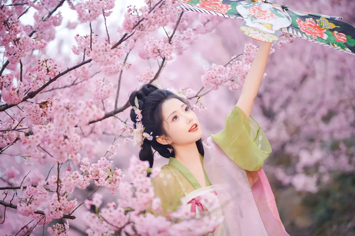 Immersed in the soft pink hues of blooming cherry blossoms, Tu Ya W emerges as a captivating vision of classical grace. This visual piece evokes a profound sense of tranquility, as if time itself has paused to honor such ethereal beauty. Wearing a delicate Hanfu crafted from fine silk with intricate embroidery, the outfit perfectly complements the dreamy natural backdrop, enhancing the model's radiant complexion. Her serene expression and gentle gaze create a poetic aura, reminiscent of romantic tales from ancient literature. The artistic interplay of natural light and a soft-focus composition highlights the intricate details of her floral hair accessories and traditional fan, showcasing a refined aesthetic taste. This collection is a true inspiration for those who appreciate the blend of traditional fashion and the fleeting beauty of spring. Every frame captures a moment of pure artistic language, blending the soul of nature with a sophisticated visual style that is both nostalgic and timelessly elegant.#CherryBlossomVibes #HanfuFashion #YiTuYu #SpringAesthetic #ArtisticPhotography #TuYaW