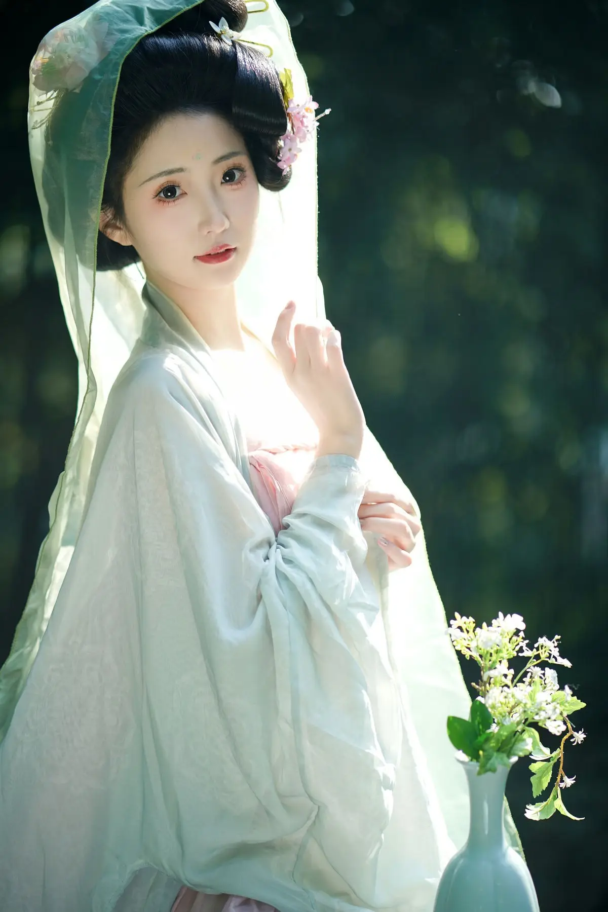 Immerse yourself in a fairy-tale world with the enchanting YiTuYu Vol8521 Tu Ya W photo collection. Model Tu Ya W radiates an ethereal and graceful beauty in her delicate light green traditional attire embodying the elegant charm of an East Asian woman. Her hair is intricately styled into an updo adorned with small flowers further enhancing her delicate and exquisite features. Amidst a lush green garden where flowers bloom Tu Ya W appears like a celestial fairy bringing a sense of peace and romance. Every gesture and gaze emanates gentleness and allure inviting viewers to admire a timeless beauty. This is an emotionally rich visual experience where art and beauty intertwine seamlessly.#YiTuYu #TuYaW #TraditionalBeauty #AsianModel #HanfuStyle