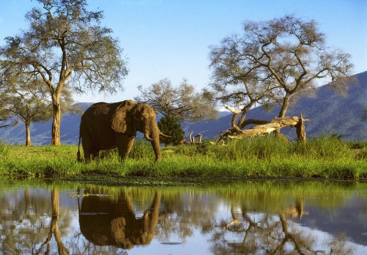 This stunning photo transports us to Mana Pools National Park, part of the legendary "land of divine lakes" along the Zambezi River. It is truly an "African elephant paradise", where colossal herds thrive in an "original pristine landscape". The special moment captured shows an elephant standing tall, reaching its trunk high to forage for food from the lush tree canopy, demonstrating their incredible adaptability and vitality. This showcases the unique "seasonal flood ecosystem" that fosters abundant life. A close-up safari experience here is more than just viewing; it's feeling the pulse of the wild. Mana Pools, a UNESCO World Heritage site, invites visitors to discover its miraculous beauty and unforgettable wildlife moments.#AfricanElephants #ManaPools #WildlifeSafari #PristineAfrica #UNESCOHeritage