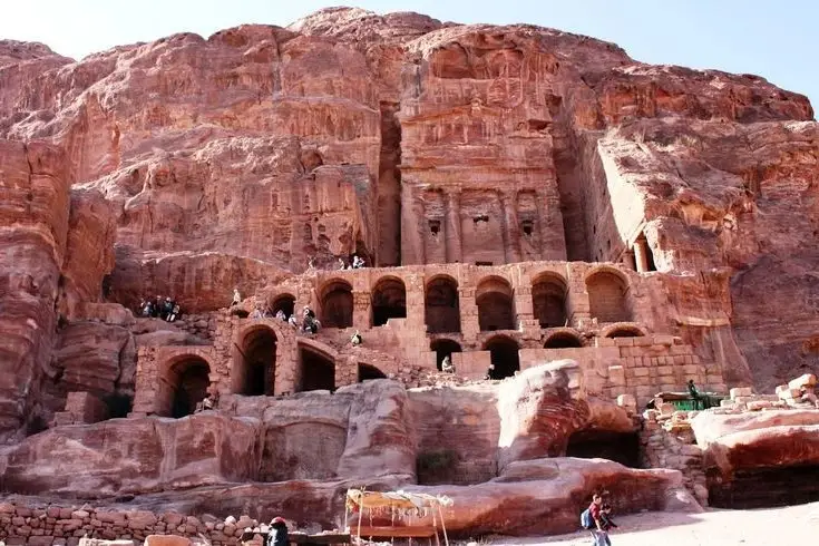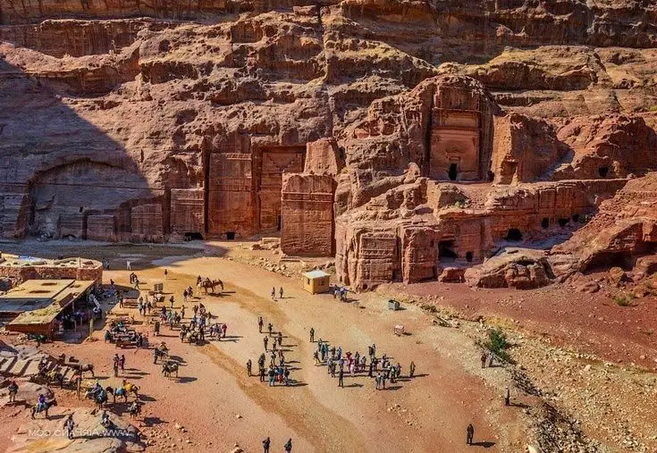 Uncover the majestic beauty of Petra, the most famous archaeological wonder in the Middle East. This image reveals a glimpse of the legendary Rose City, where colossal sandstone structures and intricate architecture were masterfully carved by the ancient Nabataeans. The sturdy columns and ancient ruins stand as vibrant testaments to a once-flourishing civilization, a bustling hub of ancient trade. Petra, a unique UNESCO World Heritage site, invites visitors to immerse themselves in its forgotten yet rediscovered history, marveling at humanity's ingenuity etched into every stone.#Petra #ArchaeologicalSite #RoseCity #UNESCOHeritage #StoneArchitecture