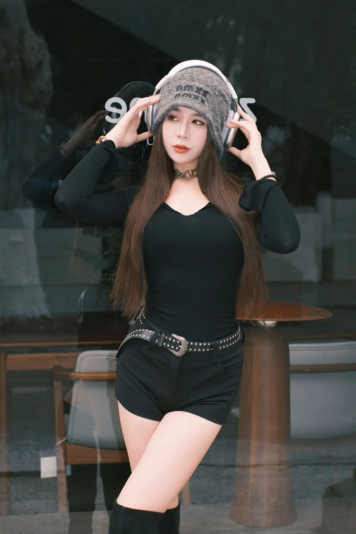 In the YiTuYu Art Language Vol.8570 collection Pao Fu Xiao Fang makes a captivating appearance showcasing her modern urban style. She exudes a strong sense of individuality effortlessly combining a long-sleeved black top with dynamic shorts accented by a chic studded belt. Her beanie hat and headphones are more than just accessories they highlight her confident and slightly mysterious aura. Her deep gaze and long flowing hair create a harmonious ensemble that draws every eye. This image not only reflects a refined aesthetic but also vividly portrays Pao Fu Xiao Fang’s unique confidence and allure offering viewers a visually engaging and emotionally rich experience. Discover her distinctive charm.#PaoFuXiaoFang #YiTuYu #UrbanFashion #ModelStyle #HeadphonesAndHat