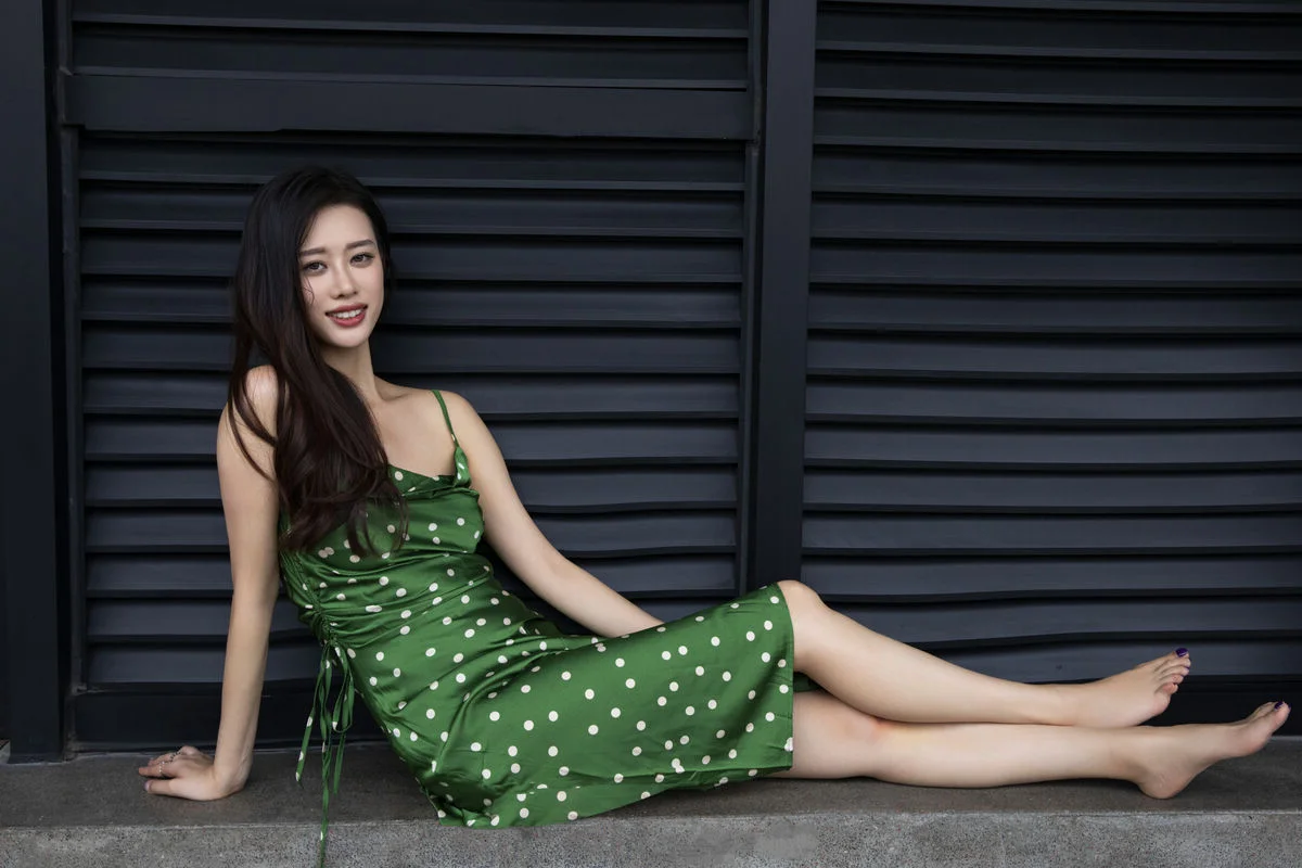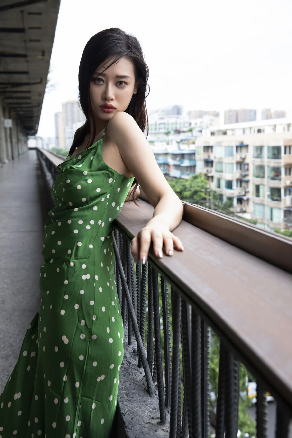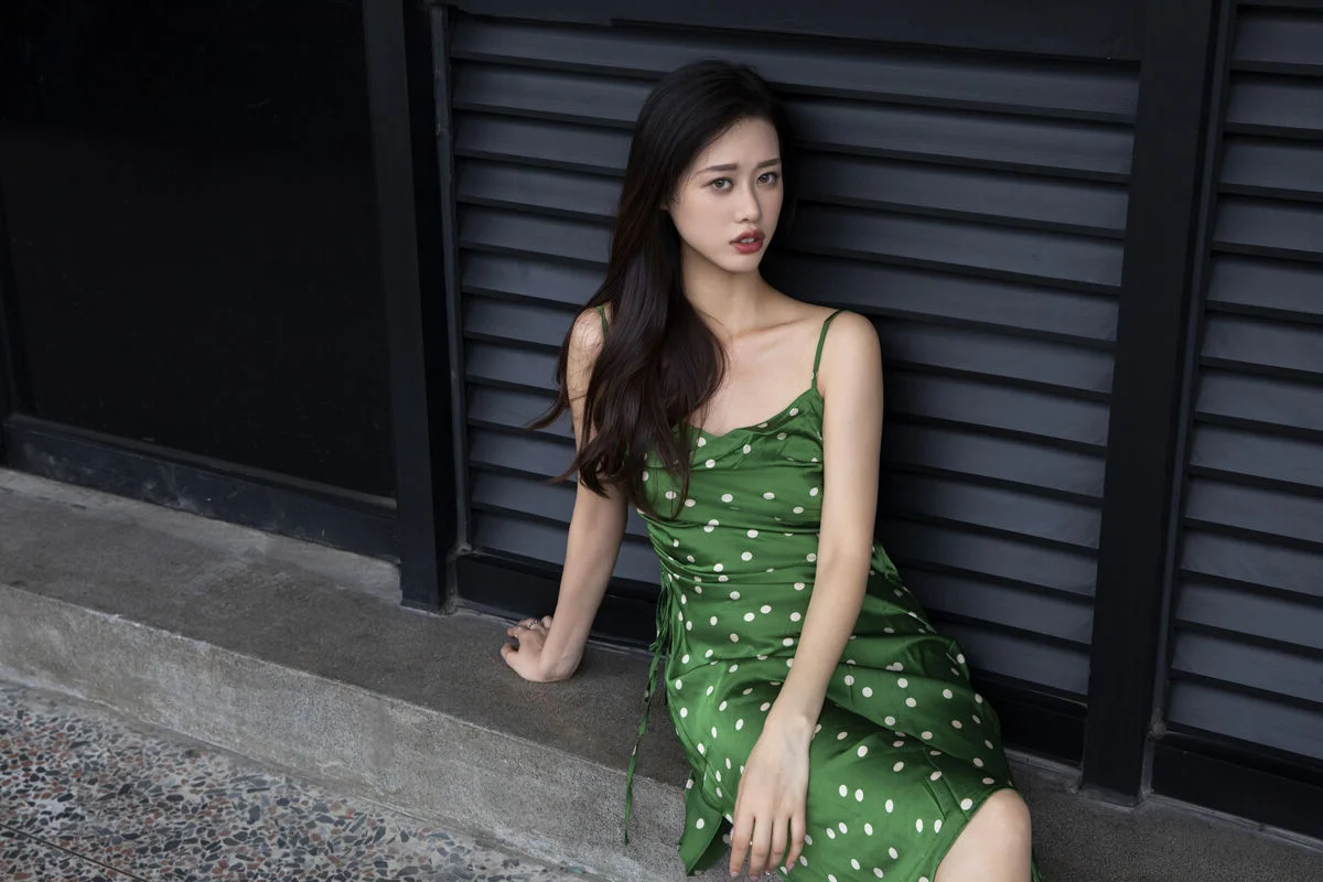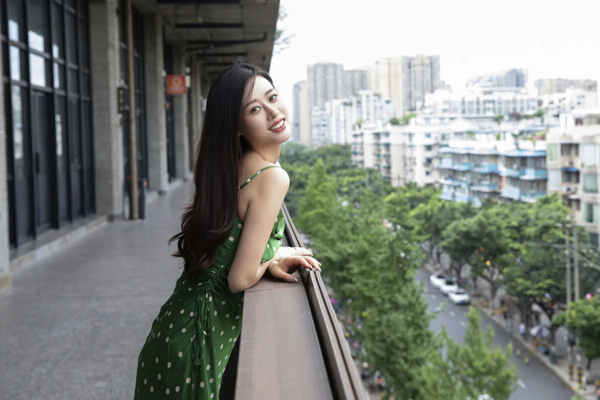 In the YiTuYu Vol8814 ChenalingCL photo series model Chenaling exudes captivating charm and elegance Posing gracefully on a high balcony her vibrant green polka-dot dress stands out against the bustling city backdrop Her confident gaze and alluring demeanor perfectly blend with the modern urban setting This collection not only showcases exquisite fashion style but also portrays Chenaling's free-spirited beauty and unique personality delivering inspiring artistic moments Each photograph tells a vivid story of vibrancy and distinctive style#Chenaling #YiTuYu #UrbanFashion #AsianModel #CaptivatingStyle