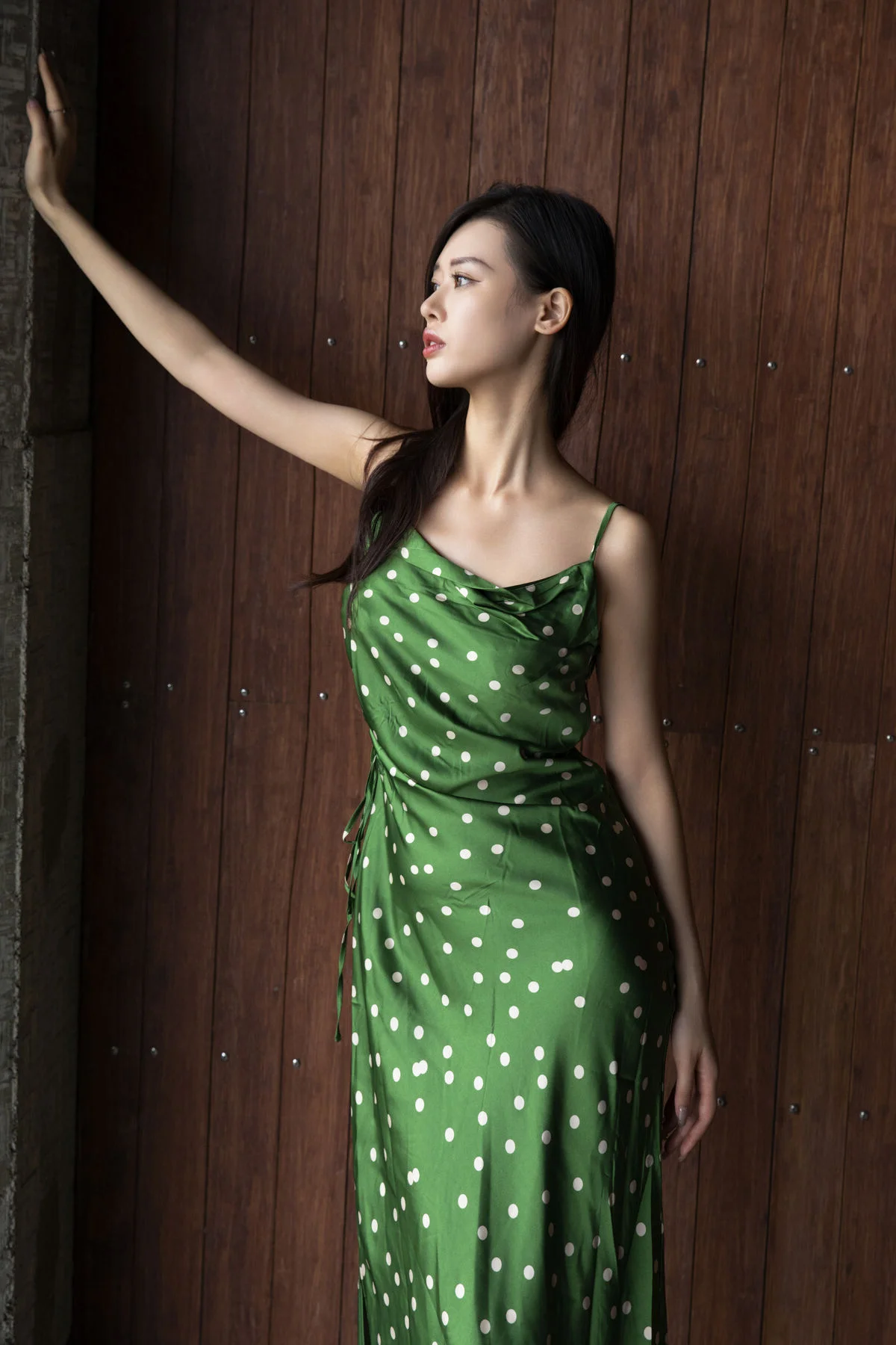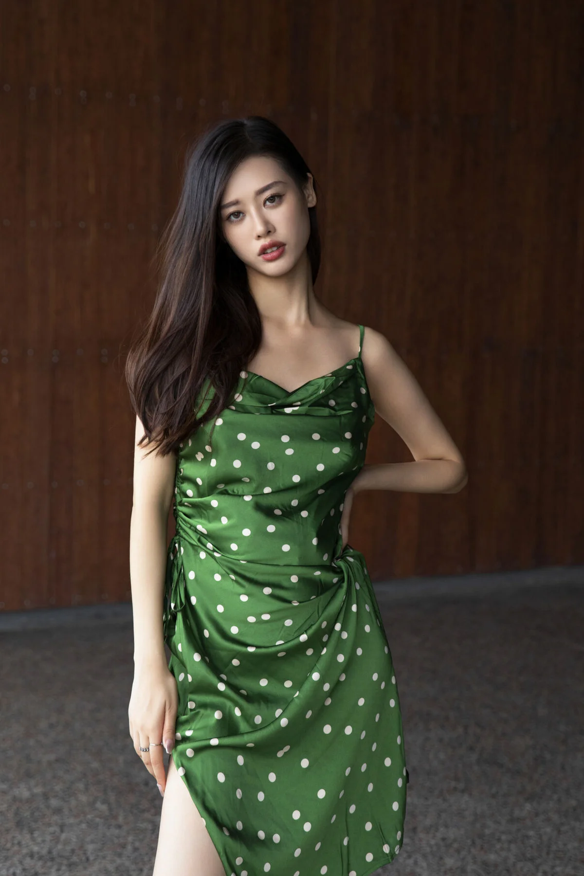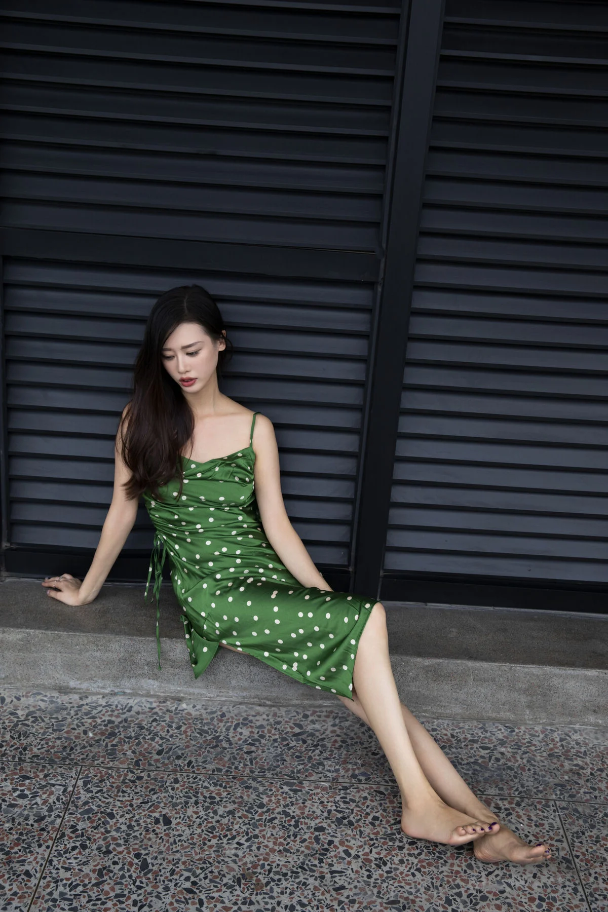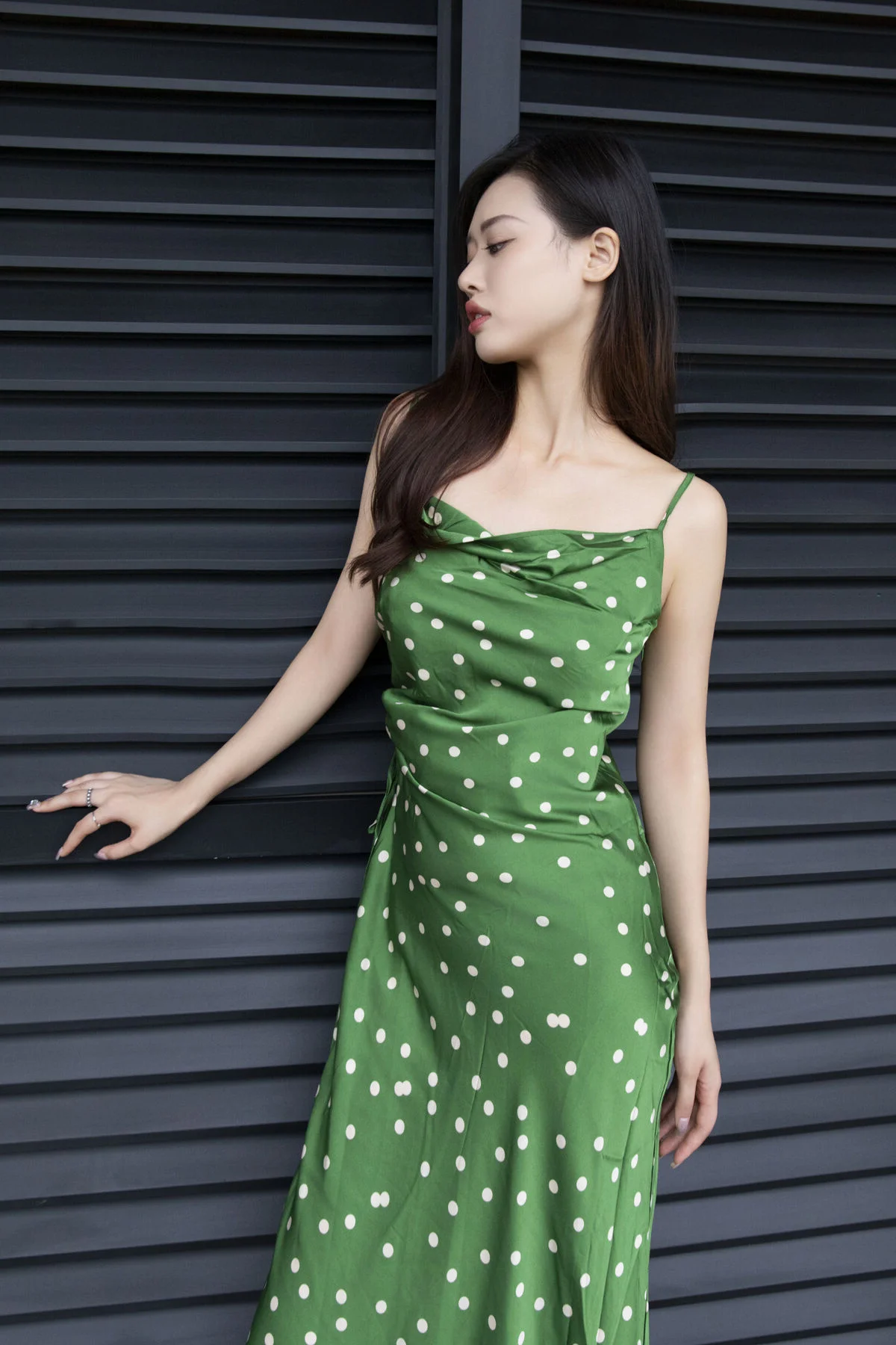 In the YiTuYu Vol8814 ChenalingCL photo series model Chenaling exudes captivating charm and elegance Posing gracefully on a high balcony her vibrant green polka-dot dress stands out against the bustling city backdrop Her confident gaze and alluring demeanor perfectly blend with the modern urban setting This collection not only showcases exquisite fashion style but also portrays Chenaling's free-spirited beauty and unique personality delivering inspiring artistic moments Each photograph tells a vivid story of vibrancy and distinctive style#Chenaling #YiTuYu #UrbanFashion #AsianModel #CaptivatingStyle