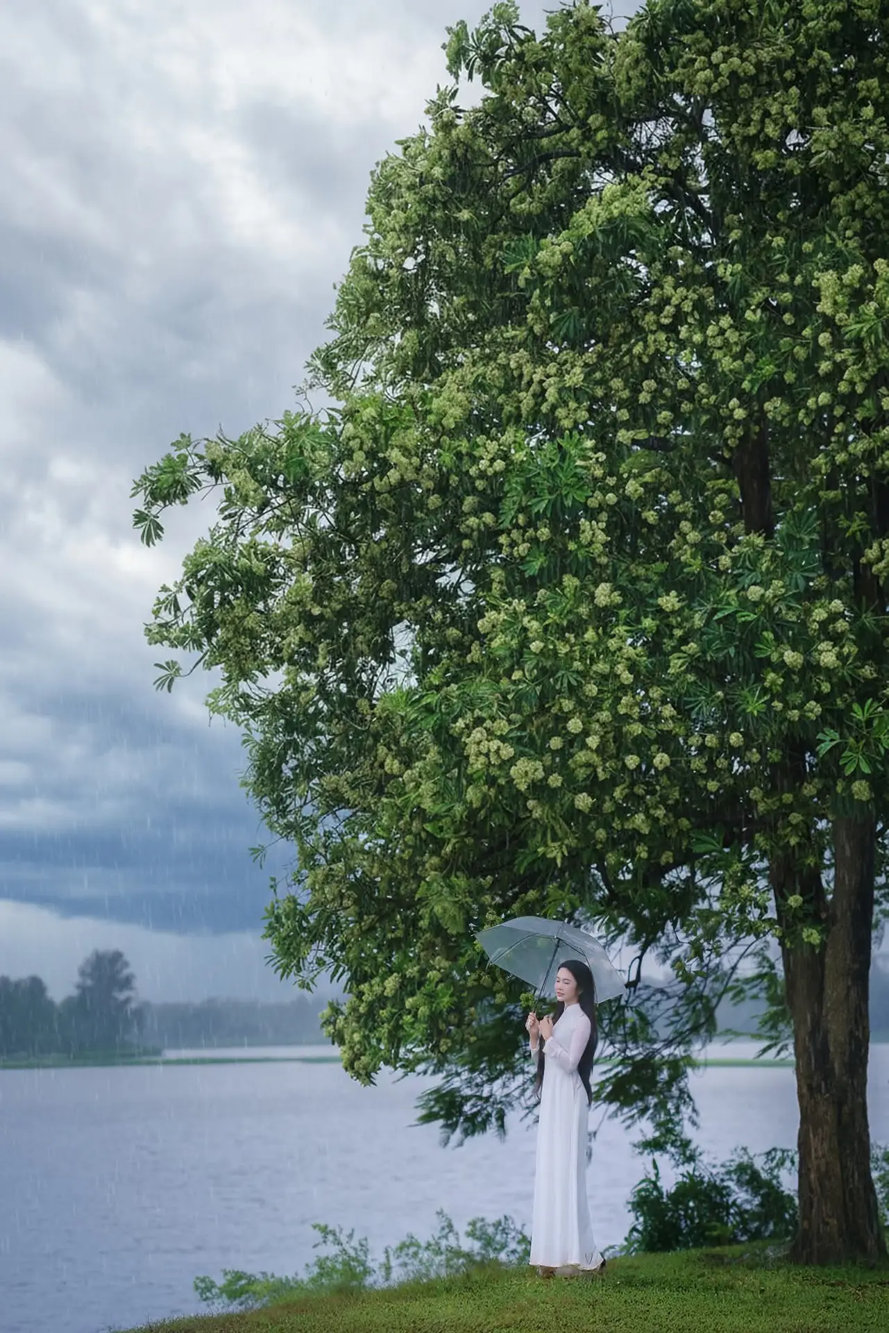 #ElegantWoman #WhiteDress #SereneGarden #TimelessBeauty #Vietnamese #Aesthetics