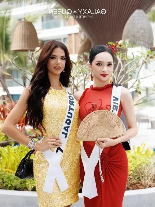 Huong Giang's presence at Miss Universe 2025 continues to draw significant attention with her radiant beauty and exquisite fashion sense Dressed in a striking red gown complemented by a traditional fan Huong Giang exudes confidence and grace while posing alongside the representative from Portugal Her alluring yet sophisticated charm and captivating aura have earned her high praise at this international beauty pageant This moment not only highlights Huong Giang's unique personality but also underscores her meticulous preparation for the prestigious Miss Universe competition promising many unforgettable impressions