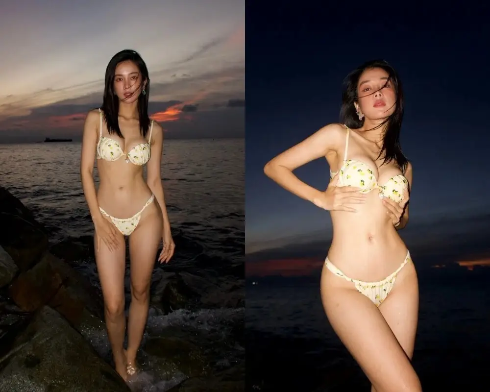 Actress Trinh My Duyen has surprised the public by revealing her stunning figure in a captivating bikini for the first time after keeping a low profile for 4 years. Against the romantic backdrop of the beach at dusk transitioning into night she confidently showcased her alluring curves. This image quickly went viral on social media attracting all eyes with Trinh My Duyen's healthy beauty and captivating aura. This moment marks a powerful comeback affirming the actress's style and self-assurance before the public. She truly exploded with this impressive physical presentation.