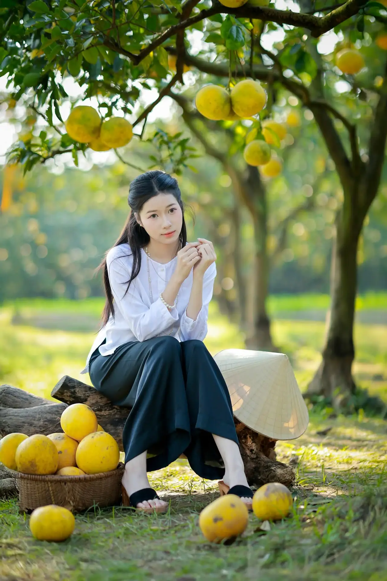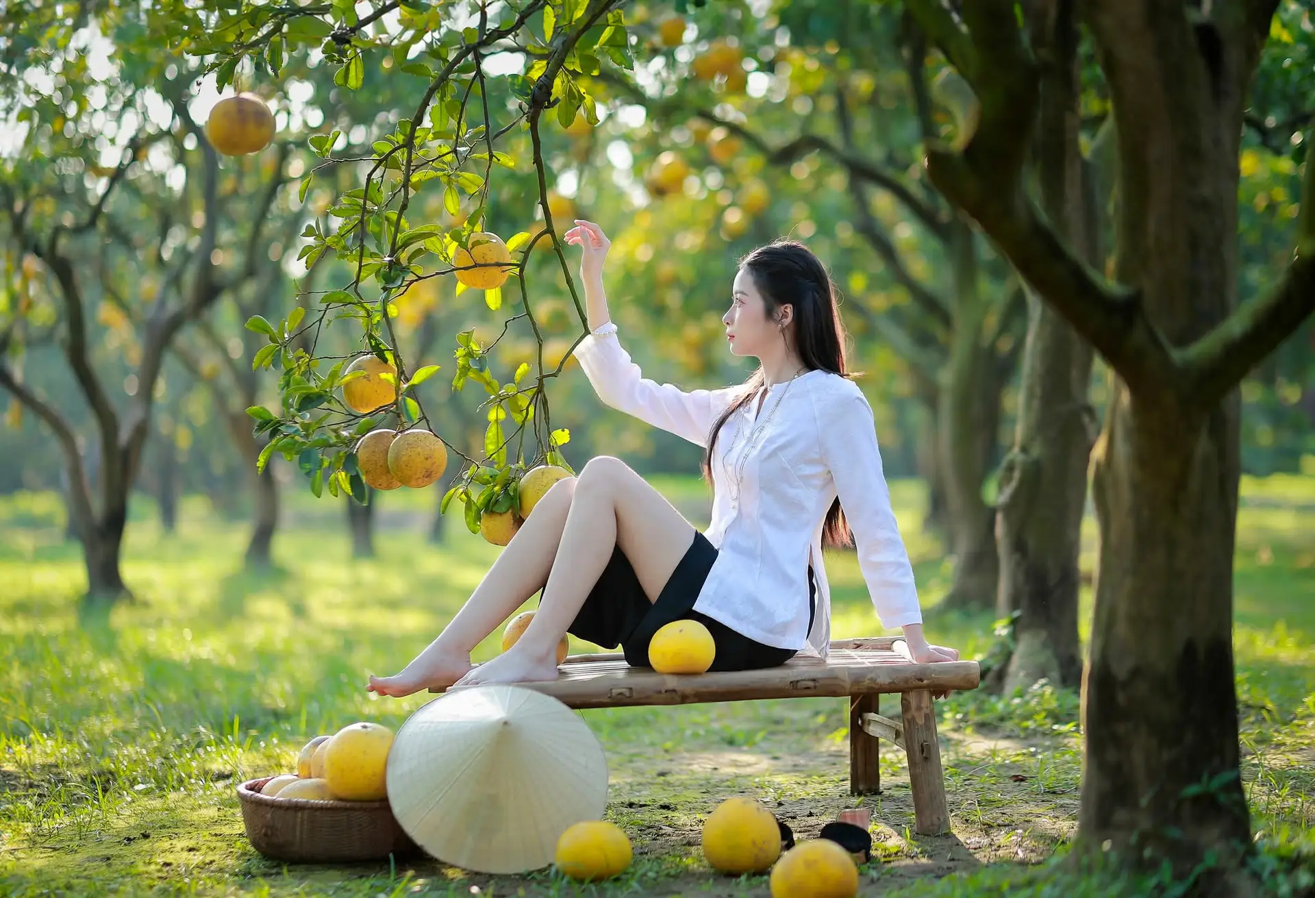 #VietnameseGirl #YouthfulBeauty #PomeloGarden #FreshNature #PeacefulVibes