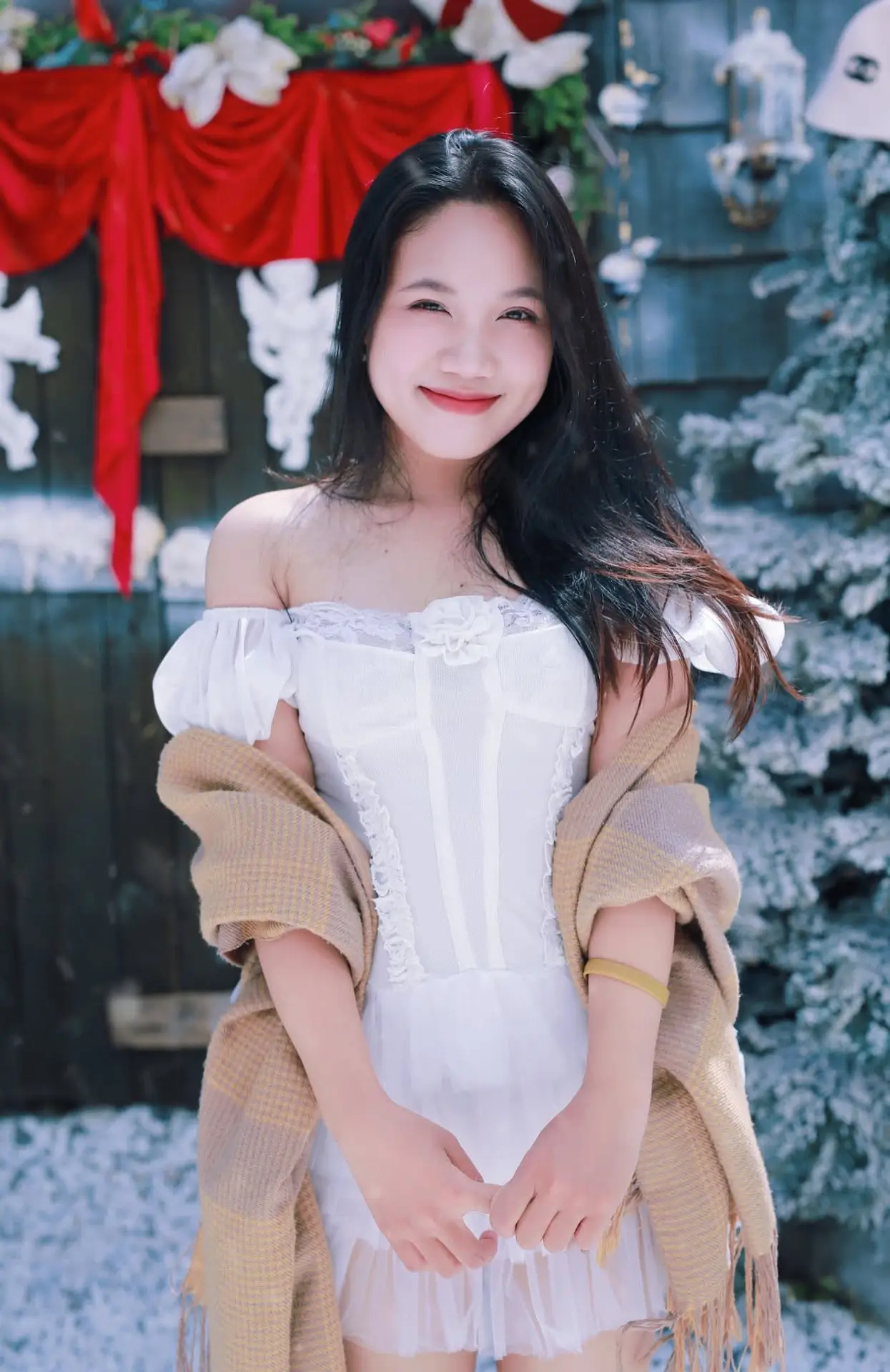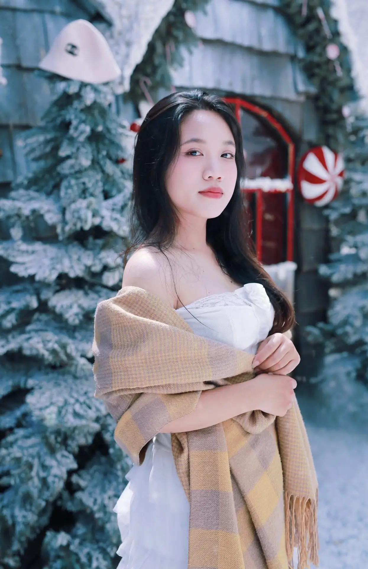 #VietnameseGirl #WinterFashion #WhiteDress #SnowyScene #WinterWonderland