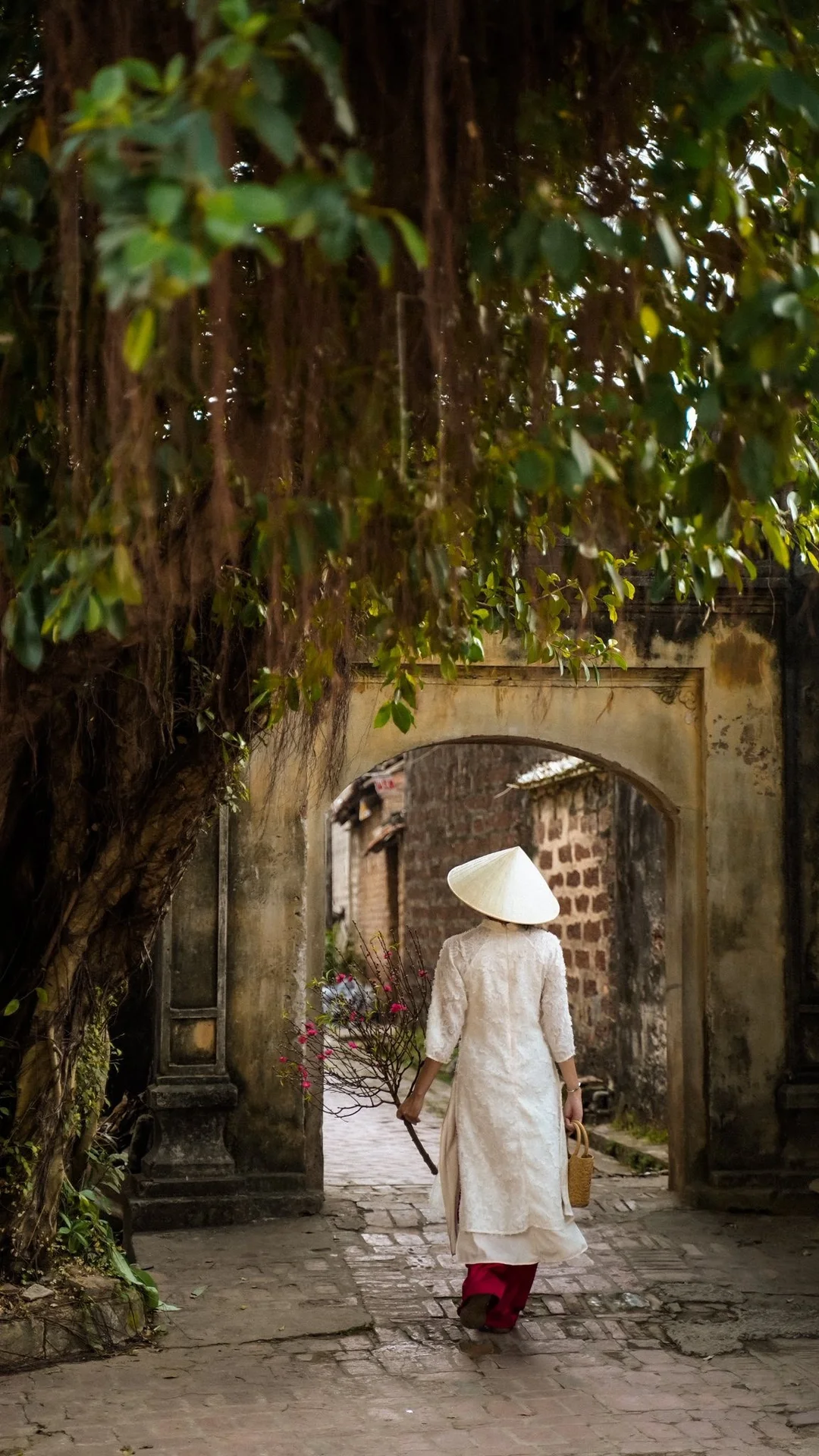 Stepping through the ancient gates of Duong Lam is like entering a living museum of Northern Vietnamese heritage. Against the backdrop of weathered laterite walls and moss-covered paths, the silhouette of a white Ao Dai flows with effortless elegance and poetic charm. This visual composition celebrates the harmony between traditional fashion and historic architecture, where the soft silk texture beautifully contrasts with the rugged, earthy tones of the village. Known as the land of two kings, Duong Lam offers a serene atmosphere that feels worlds away from the urban hustle. The inclusion of the iconic conical hat and the gentle movement of the wearer evoke a sense of nostalgia and quiet sophistication. Whether you are a photography enthusiast or a soul seeking cultural depth, this place provides a breathtaking canvas to capture the enduring spirit and artistic essence of Vietnam's rural soul during the festive season.#VietnamTravel #AoDaiStyle #AncientVillage #CulturalHeritage #HanoiTrip