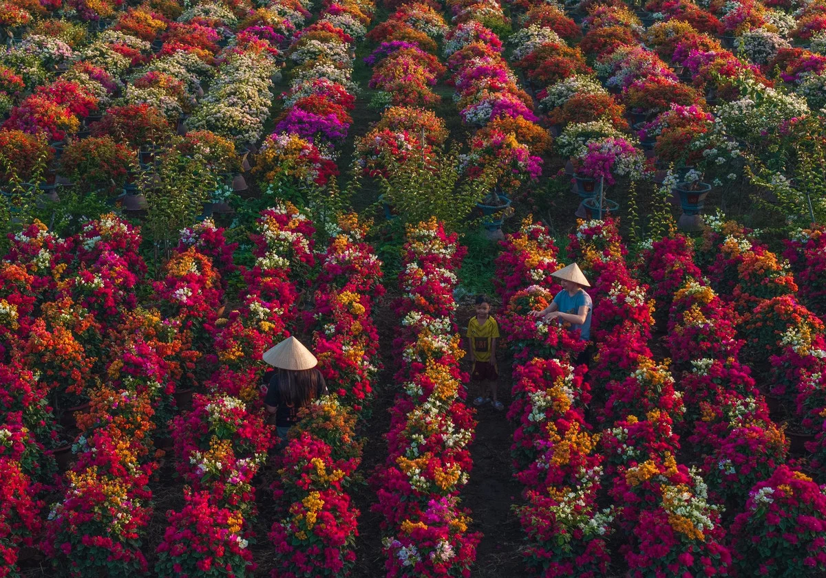 Experience the breathtaking beauty of Phu Son Flower Village, a hidden gem in Vietnam’s Mekong Delta that transforms into a sea of vibrant colors as the Lunar New Year approaches. Known for its stunning bougainvillea blooms, this traditional craft village becomes a bustling hub for both flower traders and travel enthusiasts looking for the perfect spring photo. As you wander through the rows of meticulously manicured bougainvillea plants, you will witness the artistry of local farmers who have perfected the craft of shaping these brilliant flowers.From deep purples and fiery reds to soft pinks and whites, the landscape is a living canvas. Phu Son isn't just a marketplace; it’s a cultural experience where the spirit of Tet (Vietnamese New Year) comes alive. For travelers seeking authentic cultural immersion, a visit to the Phu Son bougainvillea gardens offers a unique glimpse into the rural life of Southern Vietnam. Whether you are a professional photographer or a casual traveler, the contrast between the rustic village charm and the explosive floral colors provides endless inspiration. This year-end season, the village serves as a major supplier for flower markets across the region, making it the heart of the festive preparations. Don't miss the chance to explore this floral paradise, capture stunning memories, and learn about the traditional techniques that make these blooms so special. This destination is perfect for those wanting to escape the city and dive into the natural beauty of the Vietnamese countryside.