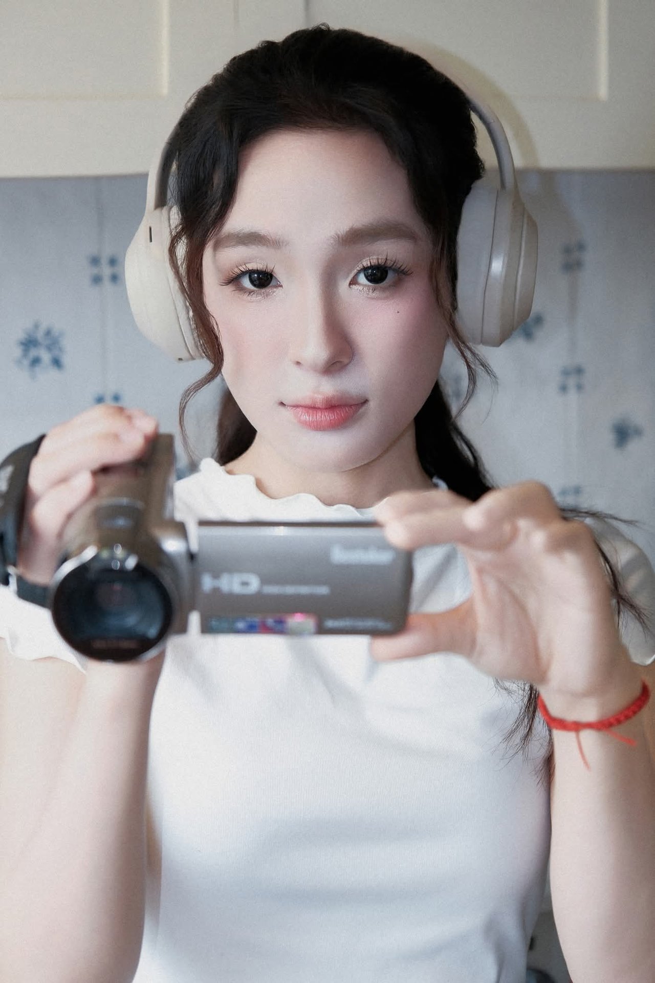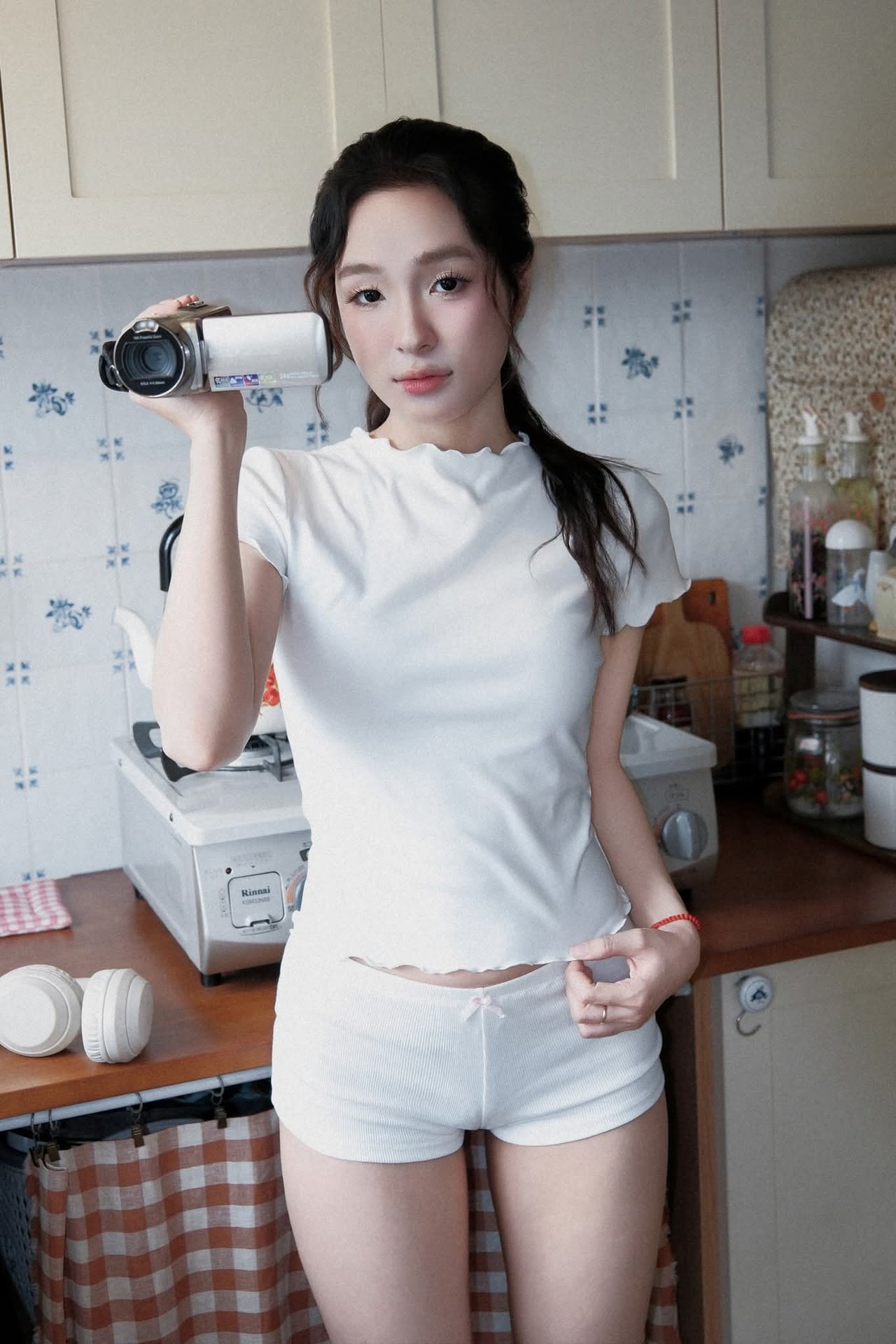 White Ao Dai Beauty: Vietnamese Girl with Vintage Camera