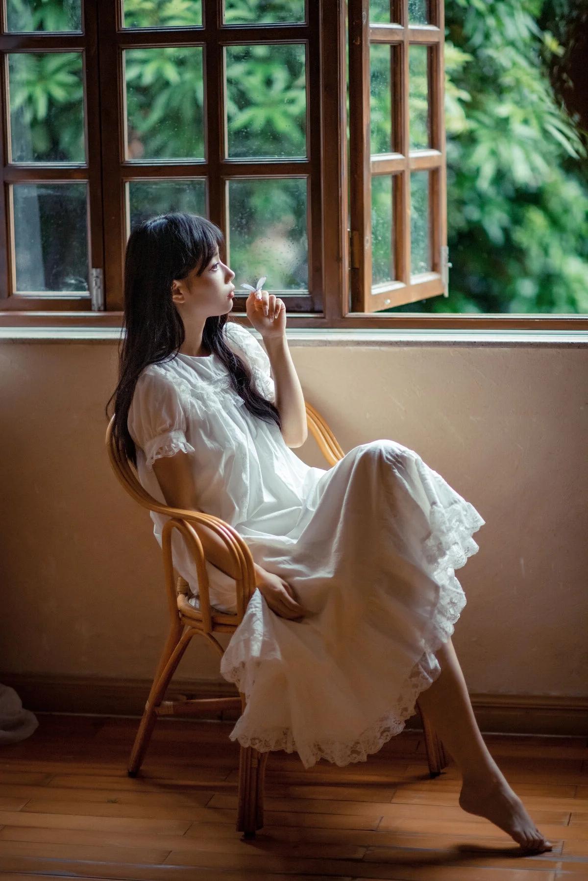 Captured in a moment of quiet reflection, Coser Kenken brings a sense of nostalgic serenity to the In Secret Part03 collection. Set against the backdrop of a traditional Japanese engawa, she embodies the essence of a peaceful summer afternoon. Her choice of attire, a delicate floral dress in soft, airy tones, perfectly complements the minimalist and organic vibe of the surroundings. There is an undeniable charm in the way she interacts with the simple joy of a watermelon slice, her expression soft and unscripted. The visual storytelling here leans heavily into the Mori Girl aesthetic, where fashion meets nature in a seamless blend of grace and simplicity. This series is a beautiful exploration of intimacy and light, inviting viewers to slow down and appreciate the subtle artistry found in everyday moments. The soft focus and warm lighting enhance the dreamy, ethereal quality of her presence, making it a truly captivating visual experience for any travel and lifestyle enthusiast.